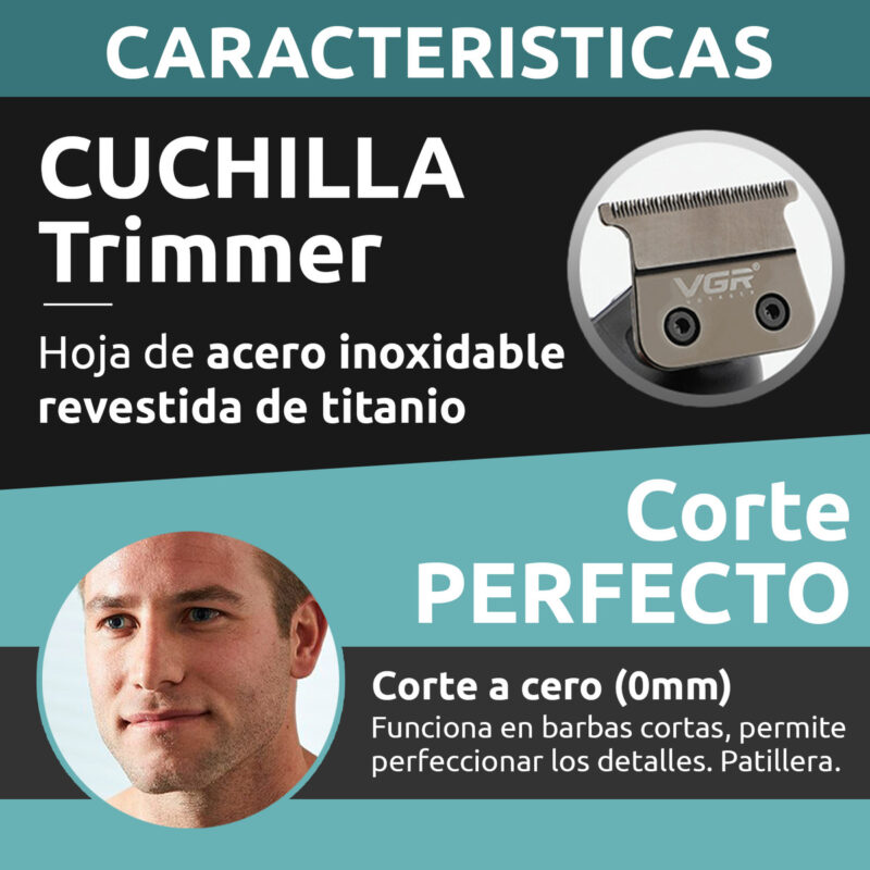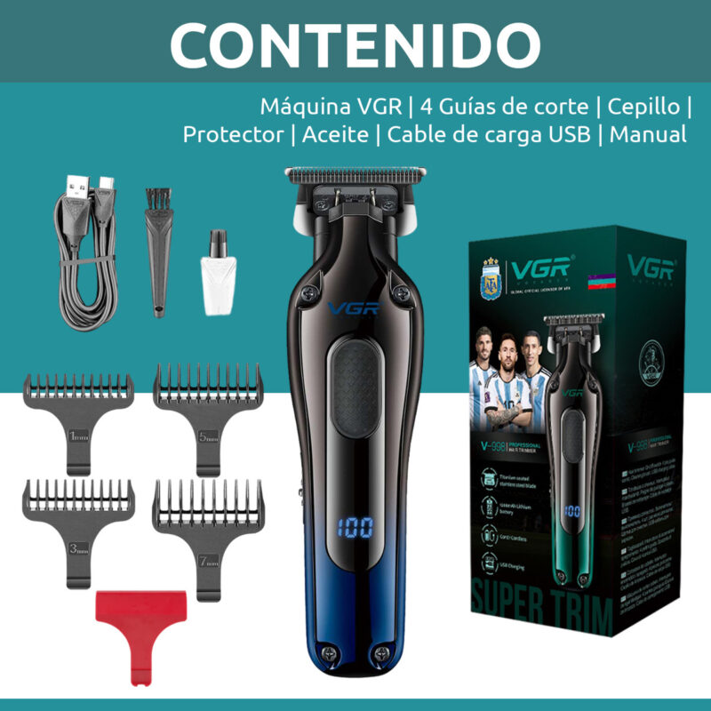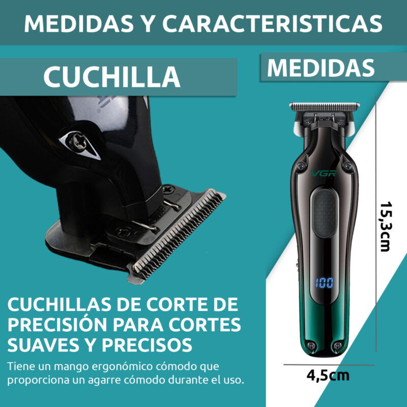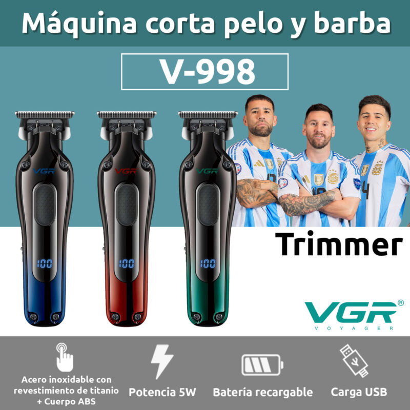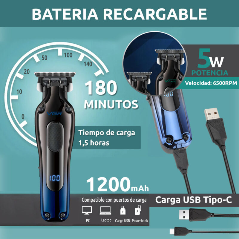 MAQUINA CORTA PELO TRIMMER ACERO TITANIO VGR V-998 USB AFA