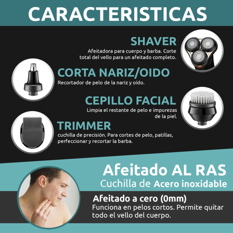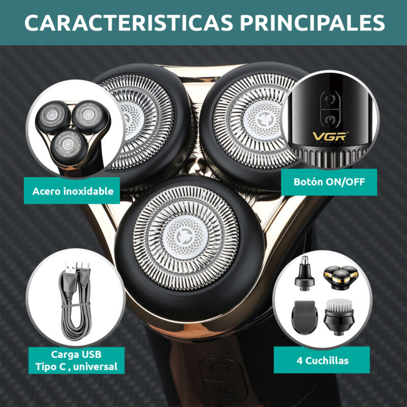 AFEITADORA ELECTRICA HOMBRE 4 EN 1 TRIMMER VGR V-388 AFA USB