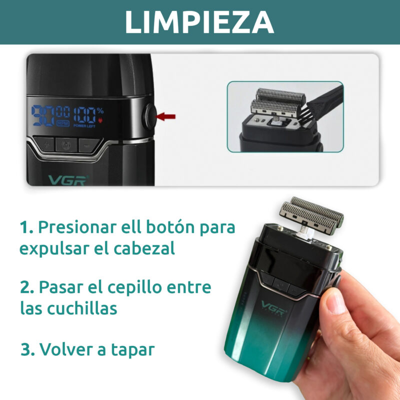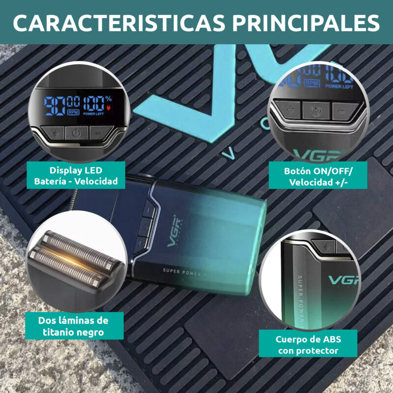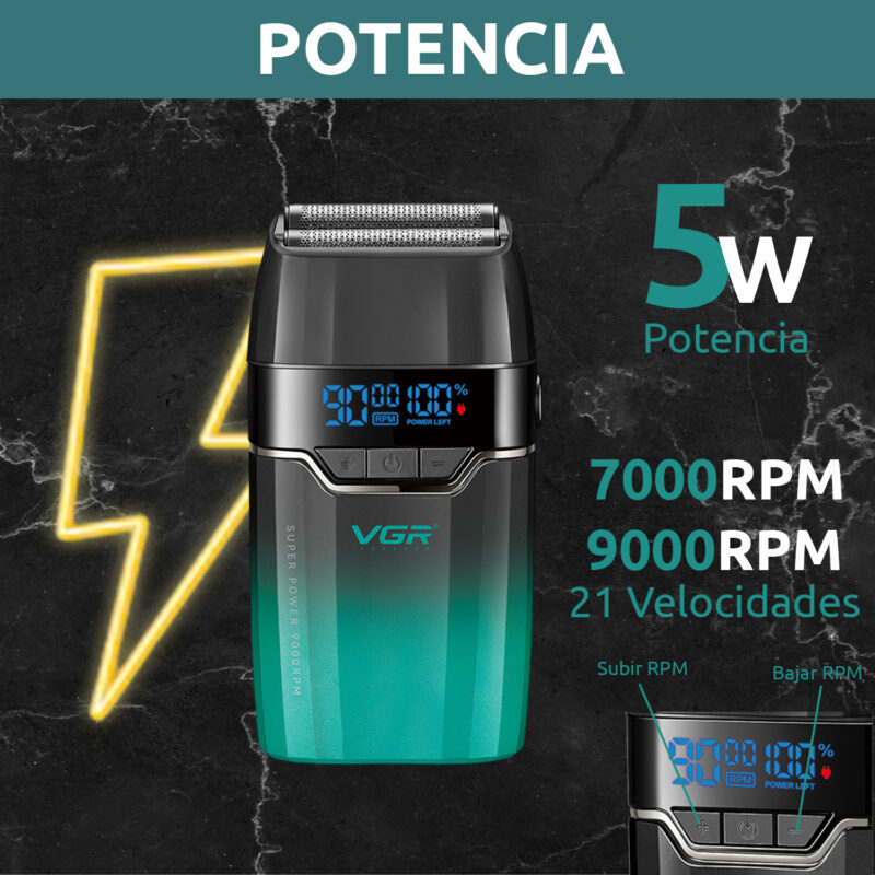 Afeitadora Electrica Hombre Barba Vgr V-308 Turbo 9000rpm Verde