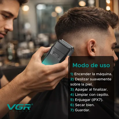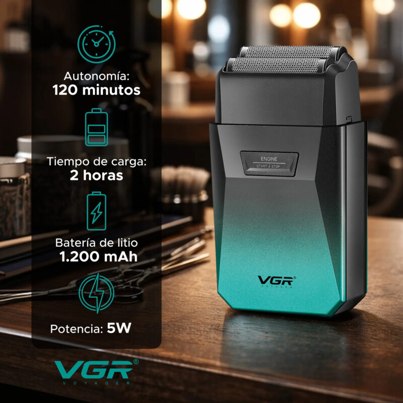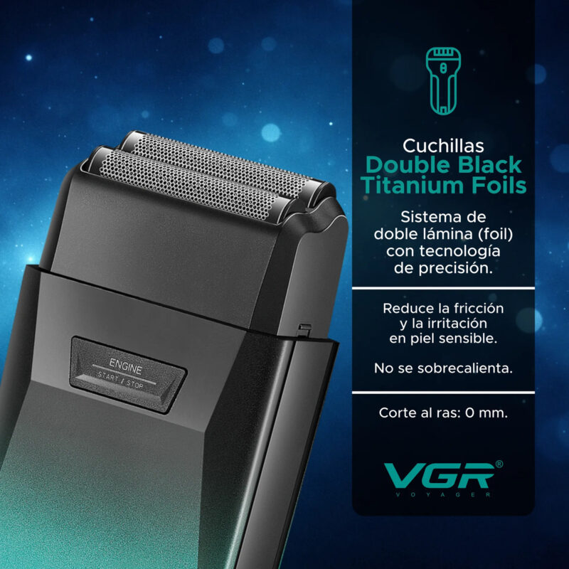 Lográ un afeitado al ras, rápido y sin irritación con la afeitadora eléctrica VGR V-372, diseñada para quienes buscan precisión, potencia y comodidad en una sola herramienta. Su sistema de doble lámina (foil) con tecnología Double Black Titanium permite un deslizamiento suave sobre la piel, reduciendo la fricción y evitando tirones incluso en vello corto o grueso.
