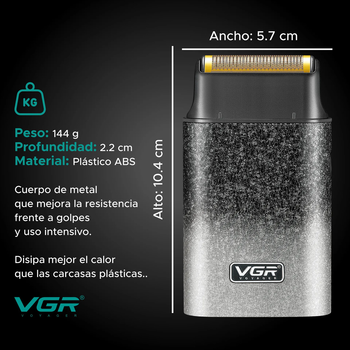 Lográ un acabado al ras y terminaciones impecables con la VGR V-326, una afeitadora compacta tipo foil diseñada especialmente para eliminar el vello residual después del corte. Su sistema de lámina permite un deslizamiento suave sobre la piel, ideal para contornos, limpieza de cuello, skin fades y rapado de cabeza.