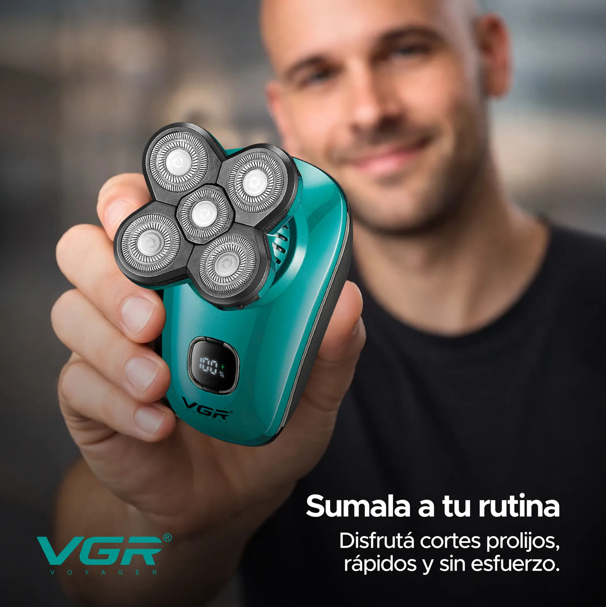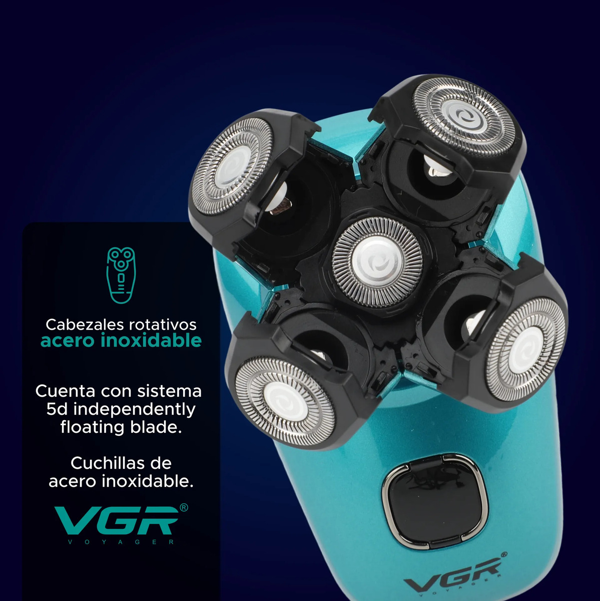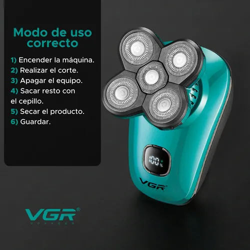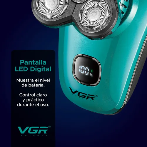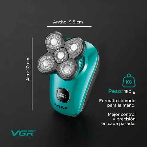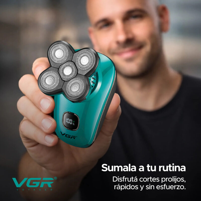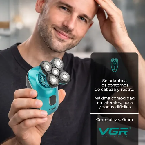 Disfrutá de un afeitado cómodo, rápido y preciso con esta afeitadora eléctrica VGR, diseñada para adaptarse a los contornos del rostro y la cabeza. Gracias a su sistema de cabezales rotativos 5D con cuchillas de acero inoxidable, logra un corte uniforme incluso en zonas difíciles como laterales, nuca y cuello.