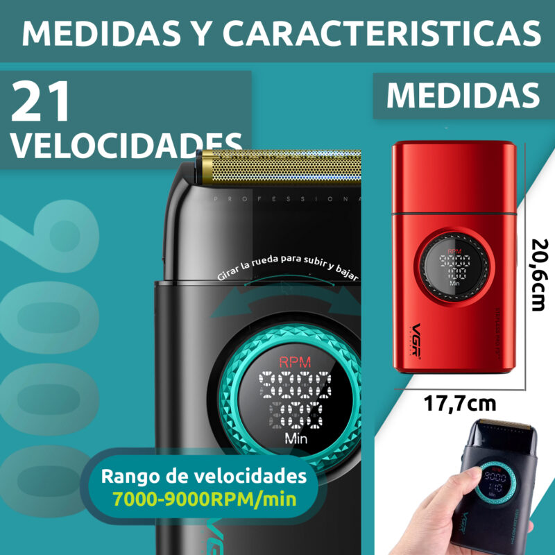 Afeitadora electrica shaver vgr v-377 titanio usb 9000 rpm