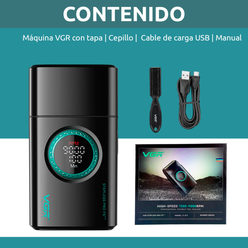 Afeitadora electrica shaver vgr v-377 titanio usb 9000 rpm