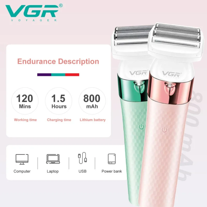 AFEITADORA ELECTRICA 2 EN 1 SHAVER + TRIMMER MUJER RECARGABLE INALAMBRICA VGR V-729