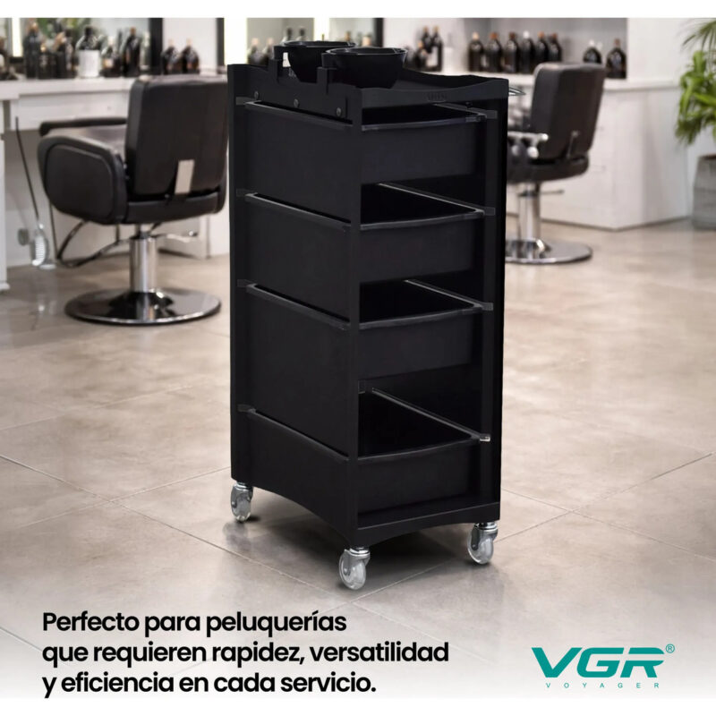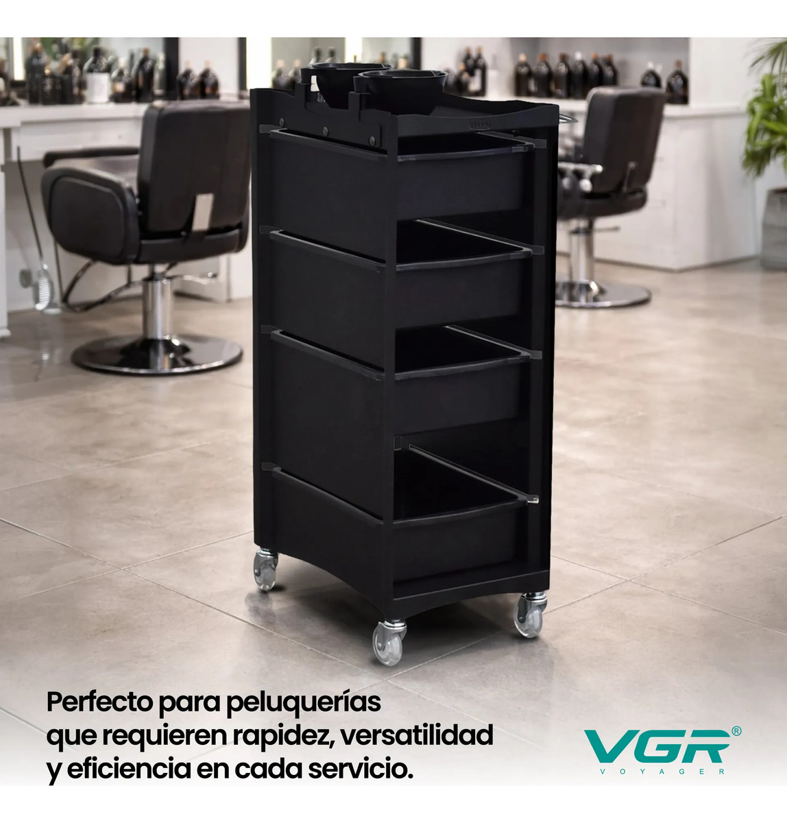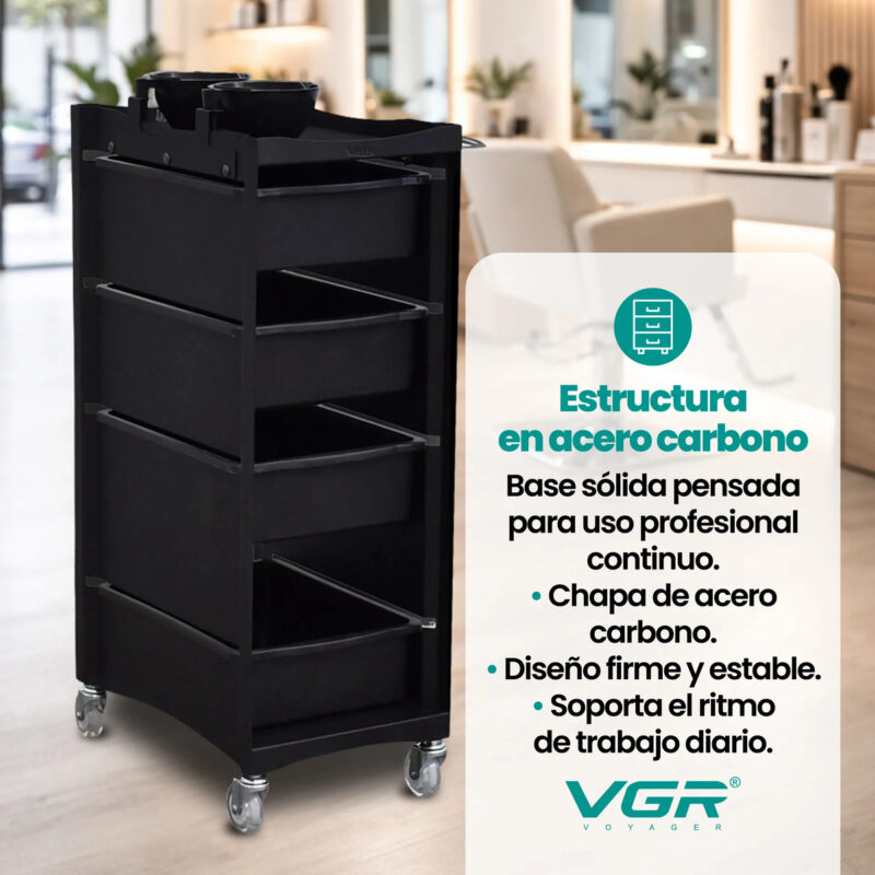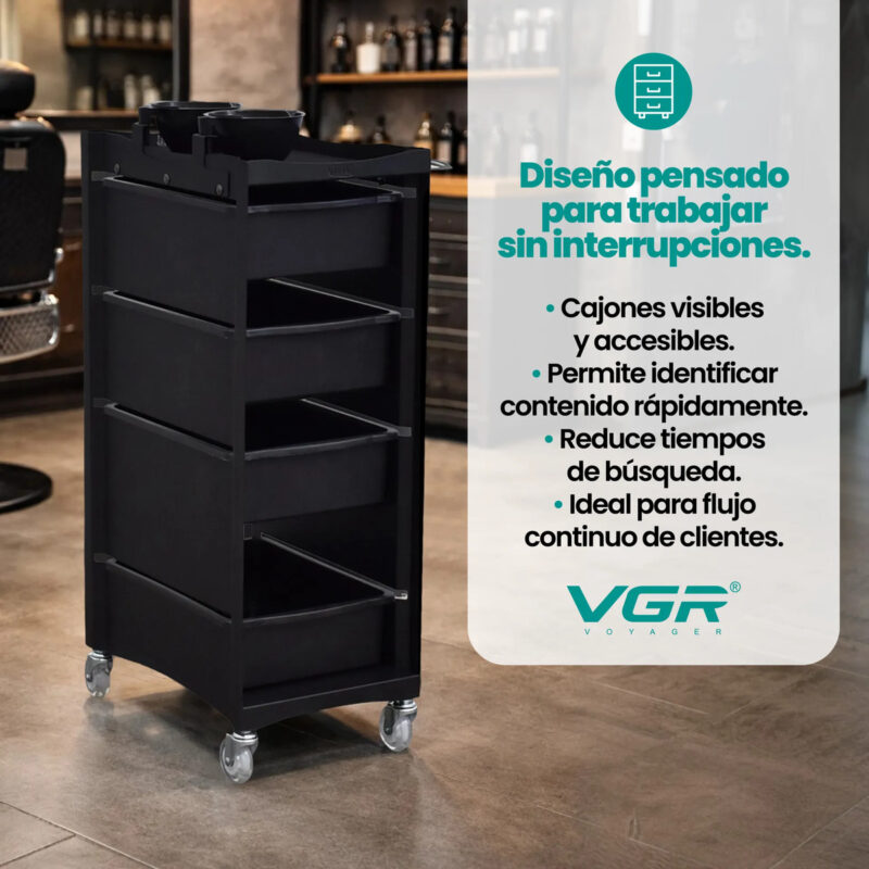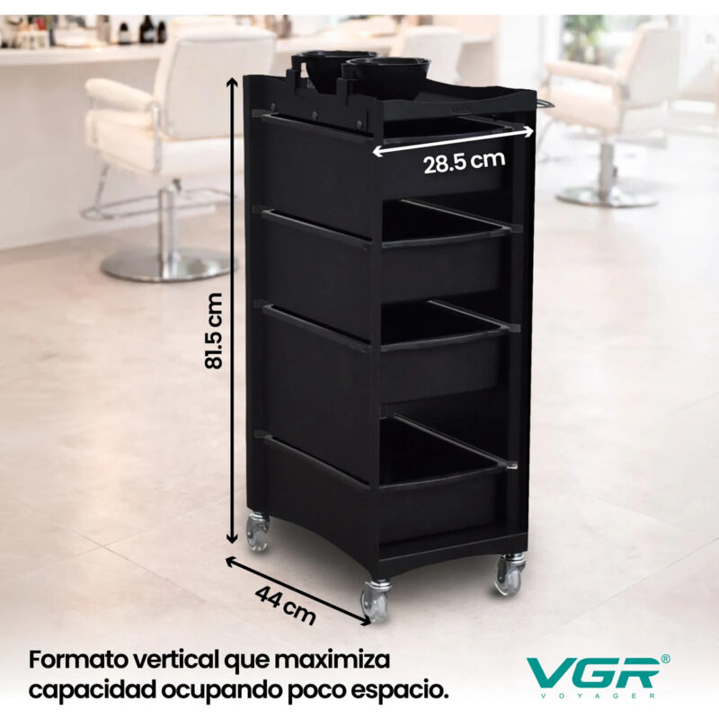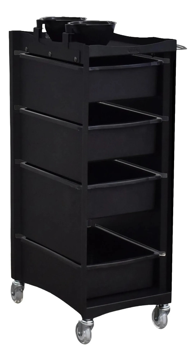 Carrito ayudante profesional diseñado para peluquerías modernas que necesitan velocidad, organización y versatilidad durante el servicio.