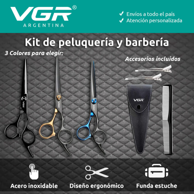 Set de Tijeras Peluquería VGR 5Pcs Acero Inoxidable Estuche