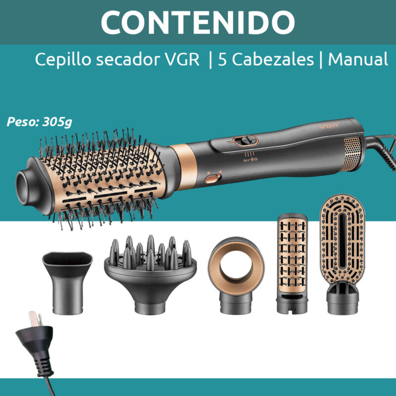 Cepillo secador alisador modelador 6en1 vgr v-491 1000w 220v