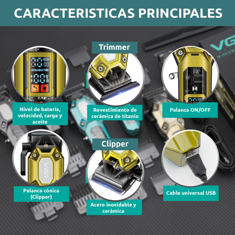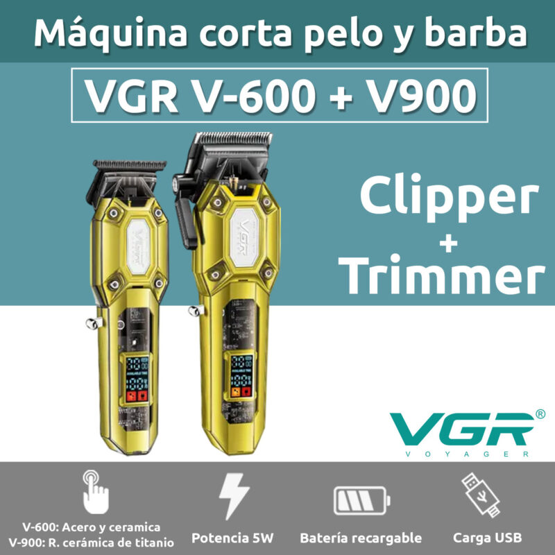 COMBO VGR MAQUINA CORTE PELO V-600 + TRIMMER V-900 7000RPM