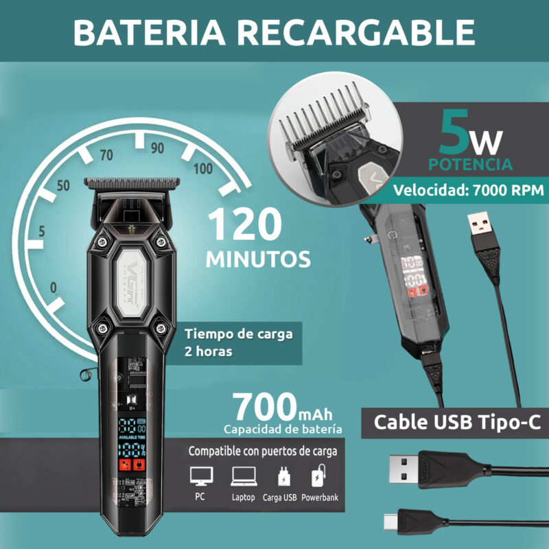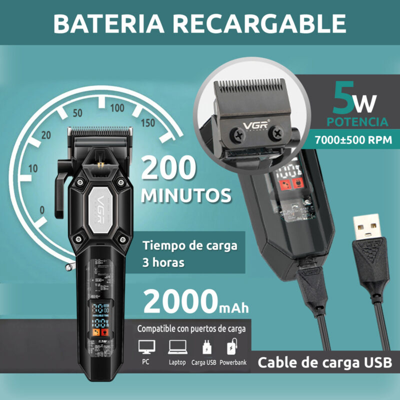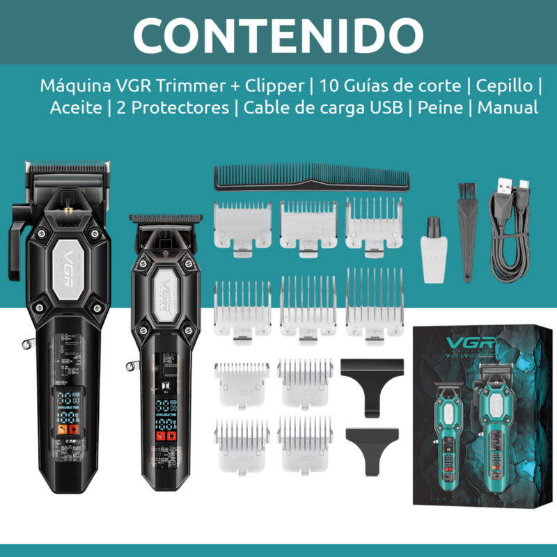 COMBO VGR MAQUINA CORTE PELO V-600 + TRIMMER V-900 7000RPM