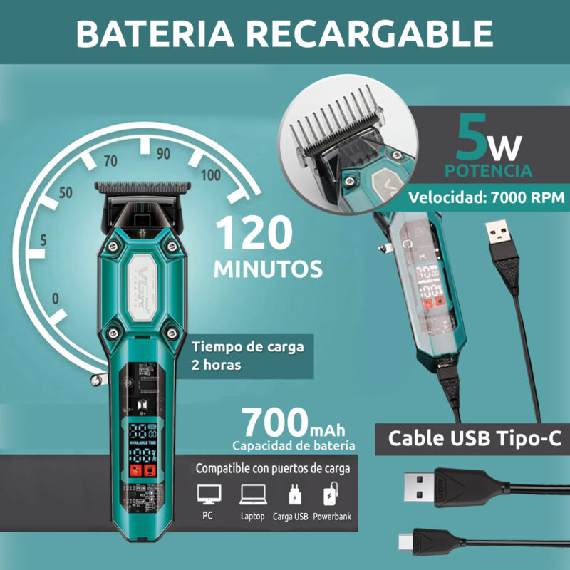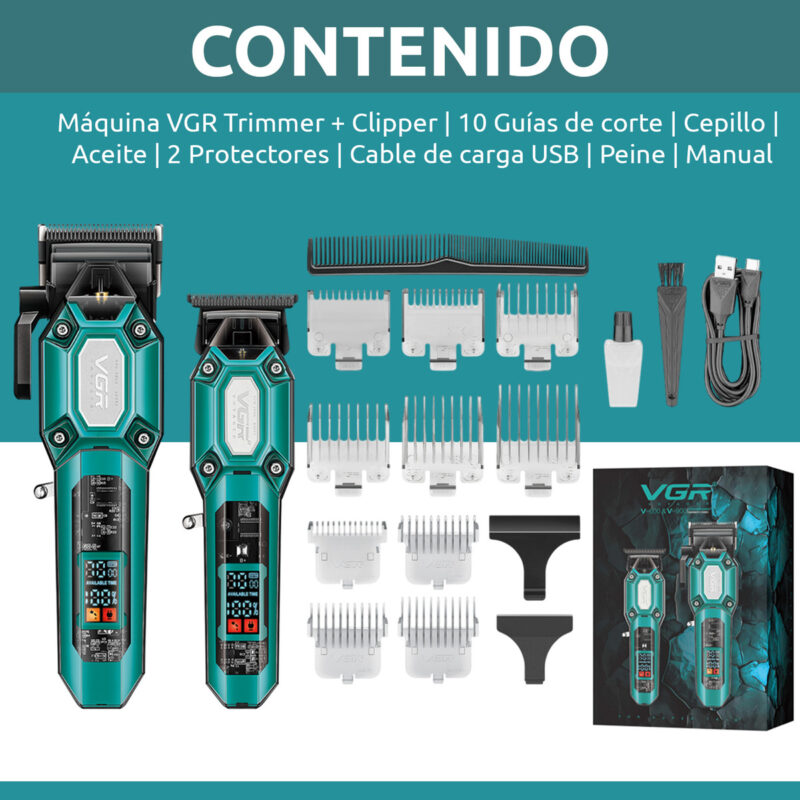 COMBO VGR MAQUINA CORTE PELO V-600 + TRIMMER V-900 7000RPM