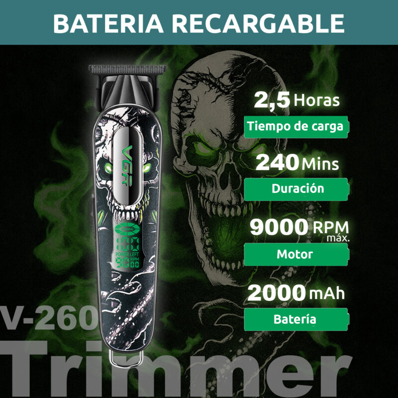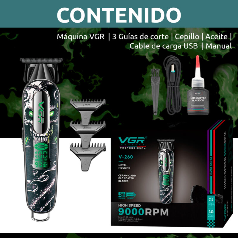 Cortadora De Pelo Patillera Pro VGR V-260 Metal Cuchilla DLC 9000RPM Color Verde