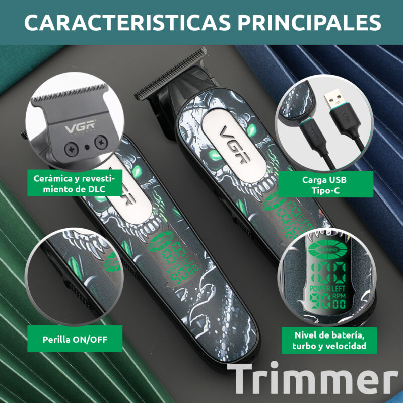 Máquina Corta Pelo Pro Trimmer Vgr V-260 Metal Cuchilla DLC 9000rpm Verde