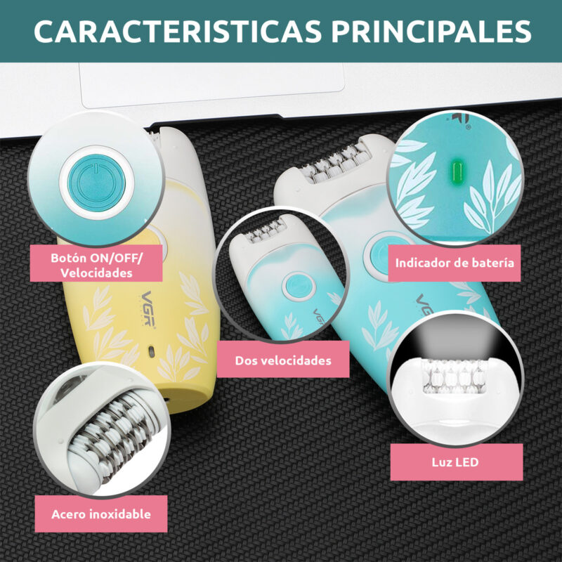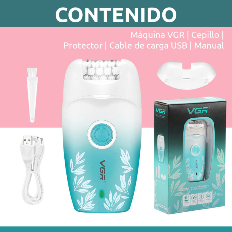 DEPILADORA CORPORAL FEMENINA VGR V-738 2 VELOCIDADES LUZ USB