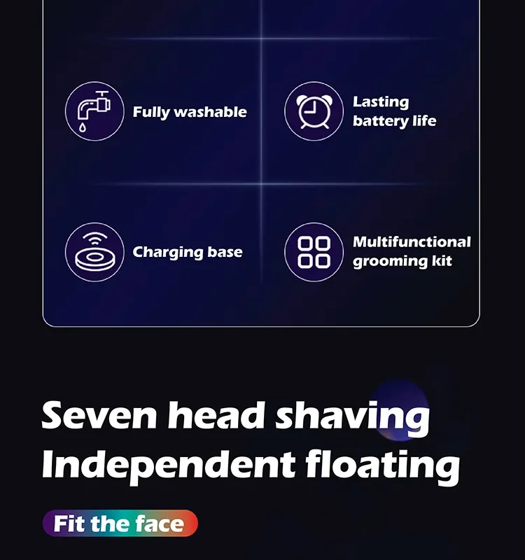 - 5 cabezales (Recortador de nariz, Recortadora de pelo, Cepillo de limpieza Facial, Cepillo de masaje de silicona, Afeitadora corporal)