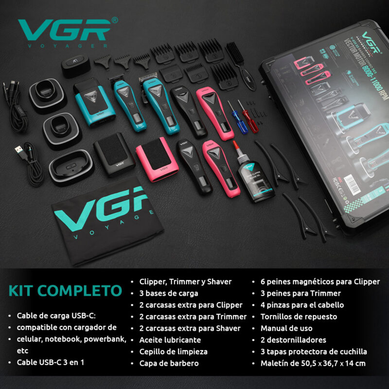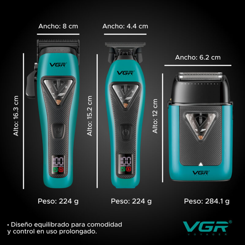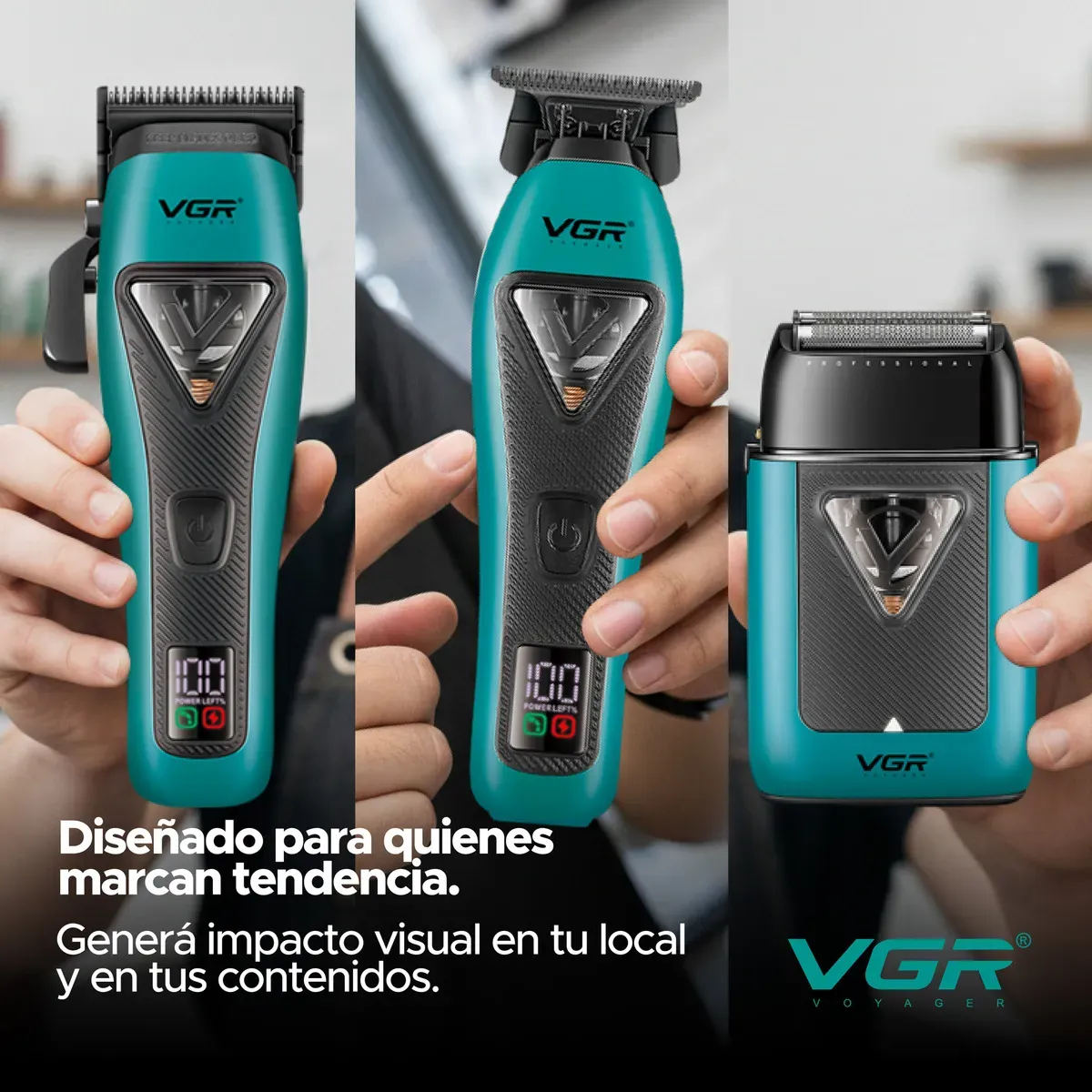Llevá tu nivel profesional al siguiente nivel con el Combo de máquinas de cortar pelo VGR, diseñado para barberos y estilistas que buscan rendimiento, estilo y diferenciación.
