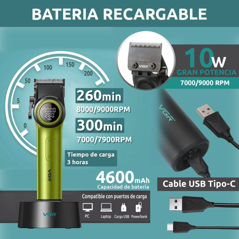 Máquina Barbería Profesional Corta Pelo VGR V-001 9000 RPM