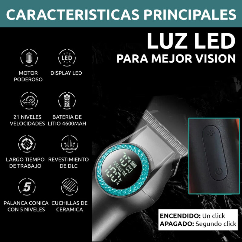 La mejor máquina de cortar pelo para barberos y peluquerías, también ideal para uso doméstico. Esta cortadora de pelo de alta gama combina potencia y precisión, convirtiéndose en la elección perfecta para quienes buscan la excelencia en el cuidado personal. Con una velocidad de hasta 9000 RPM y cuchillas de cerámica y DLC, esta máquina de cortar pelo profesional garantiza un rendimiento superior.