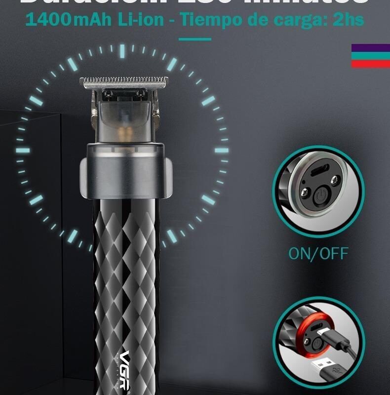 MAQUINA CORTA PELO BARBA CALVA VGR V-170 RECARGABLE USB DISPLAY LED 2 VELOCIDADES