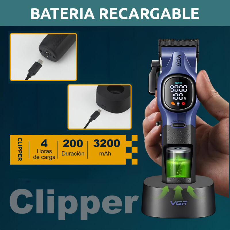 Equipado con cuchillas de acero inoxidable de alta calidad, este modelo garantiza un rendimiento duradero y un corte limpio en todo tipo de cabello. Además, su motor potente asegura una experiencia de uso eficiente, reduciendo el tiempo de corte sin sacrificar la calidad.