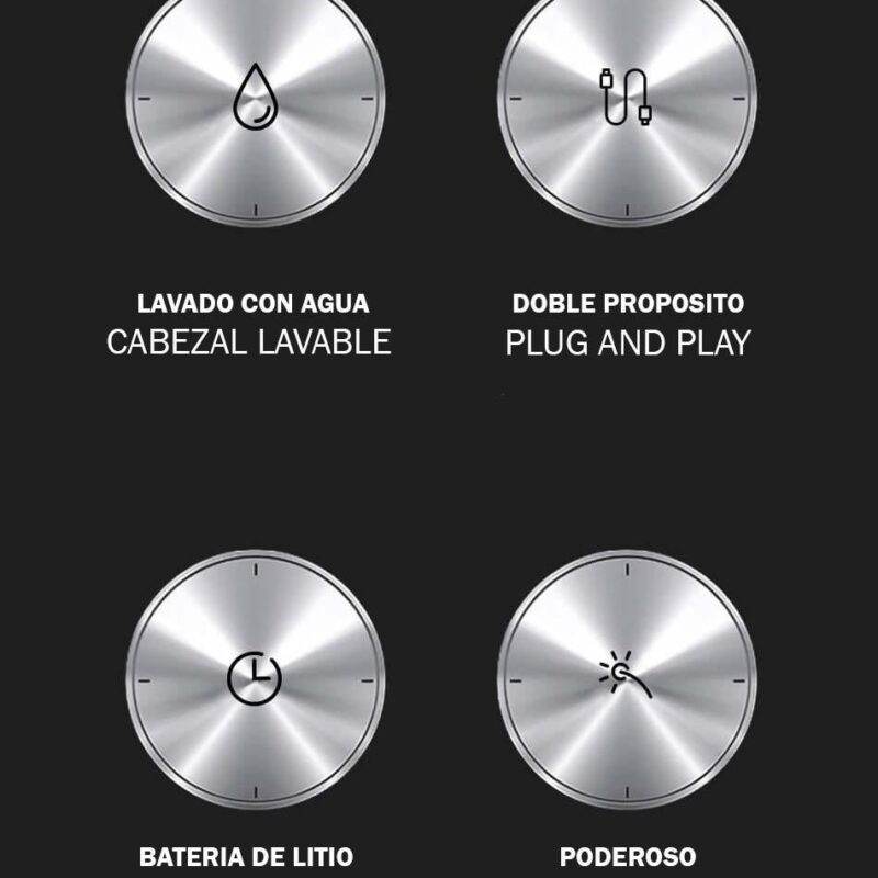 Aspecto moderno, cómodo de sostener, portátil y compacto, y se puede llevar a cualquier lugar. Carga USB y conexión de doble propósito, larga duración de la batería, bajo nivel de ruido, gran potencia.