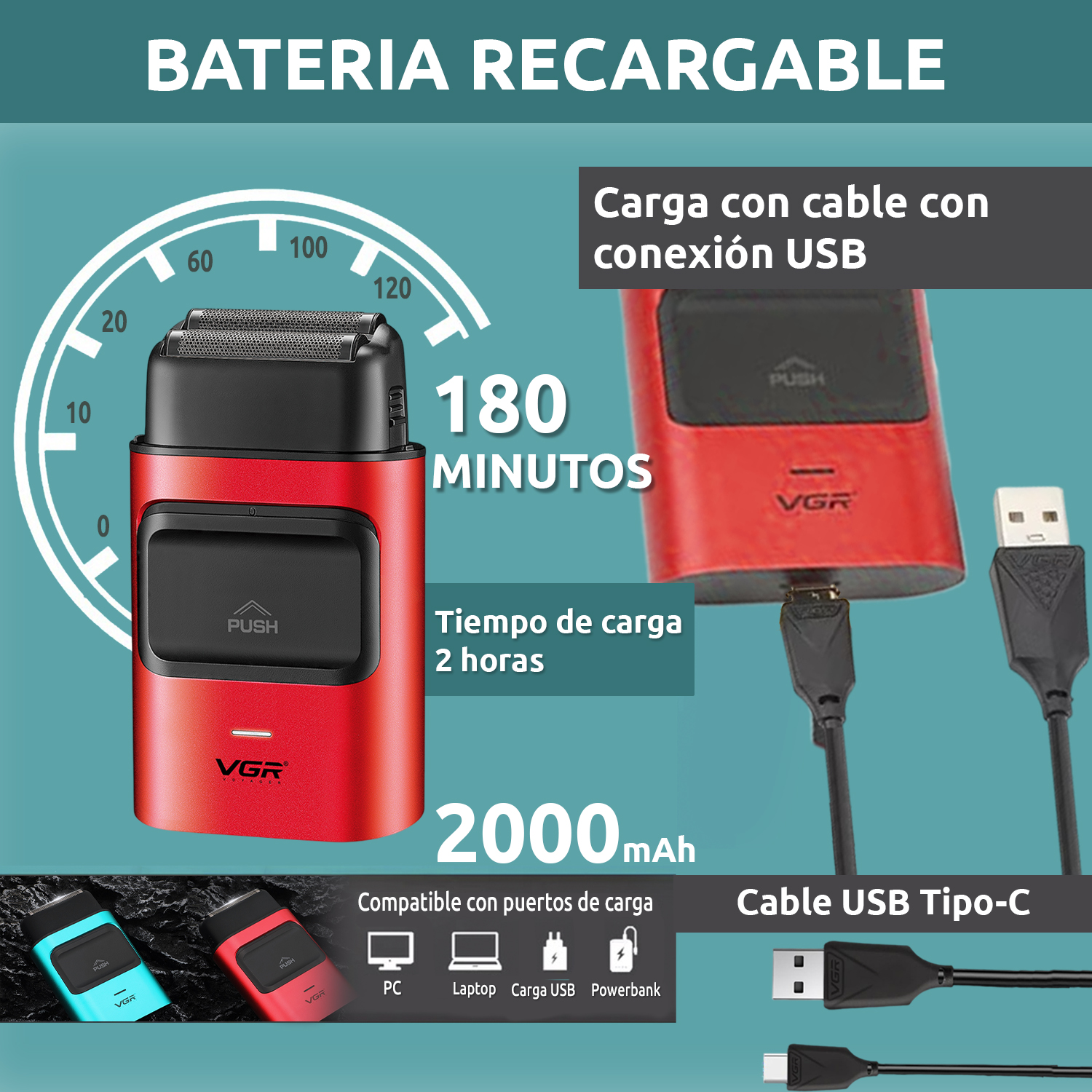 Maquina Corta Pelo Rasuradora titanio Recargable Vgr V-307