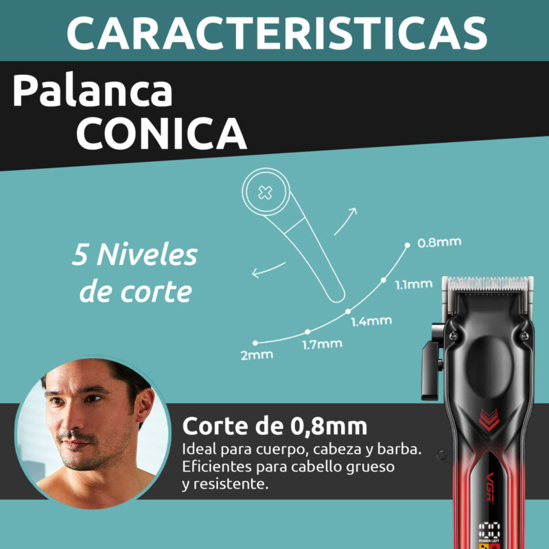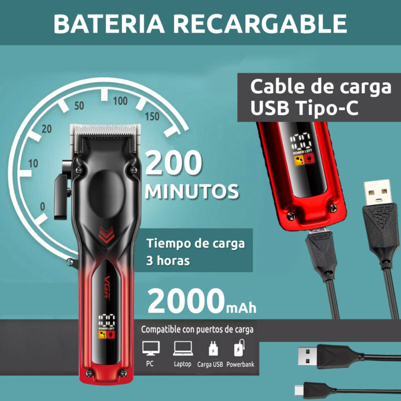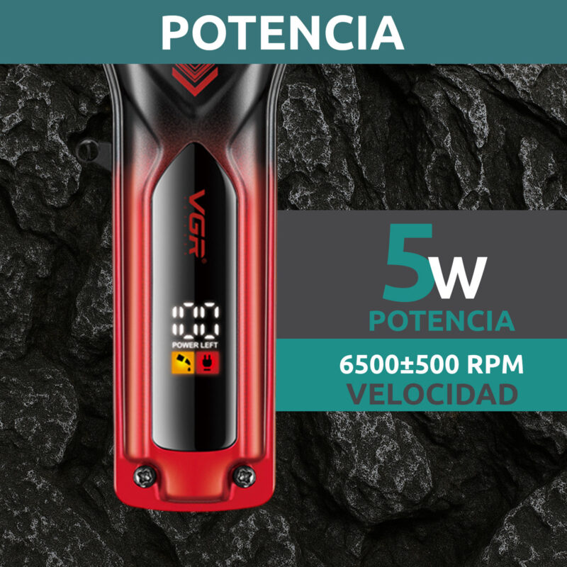 MÁQUINA CLIPPER BARBERÍA PROFESIONAL CORTA PELO VGR V-656 HOMBRE INALAMBRICA VELOCIDAD 6500 RPM 5W