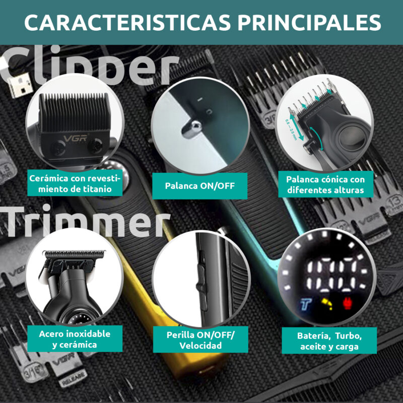 Máquina Cortar Pelo Clipper Vgr V-196 & Trimmer V-996 7000rpm Set x2