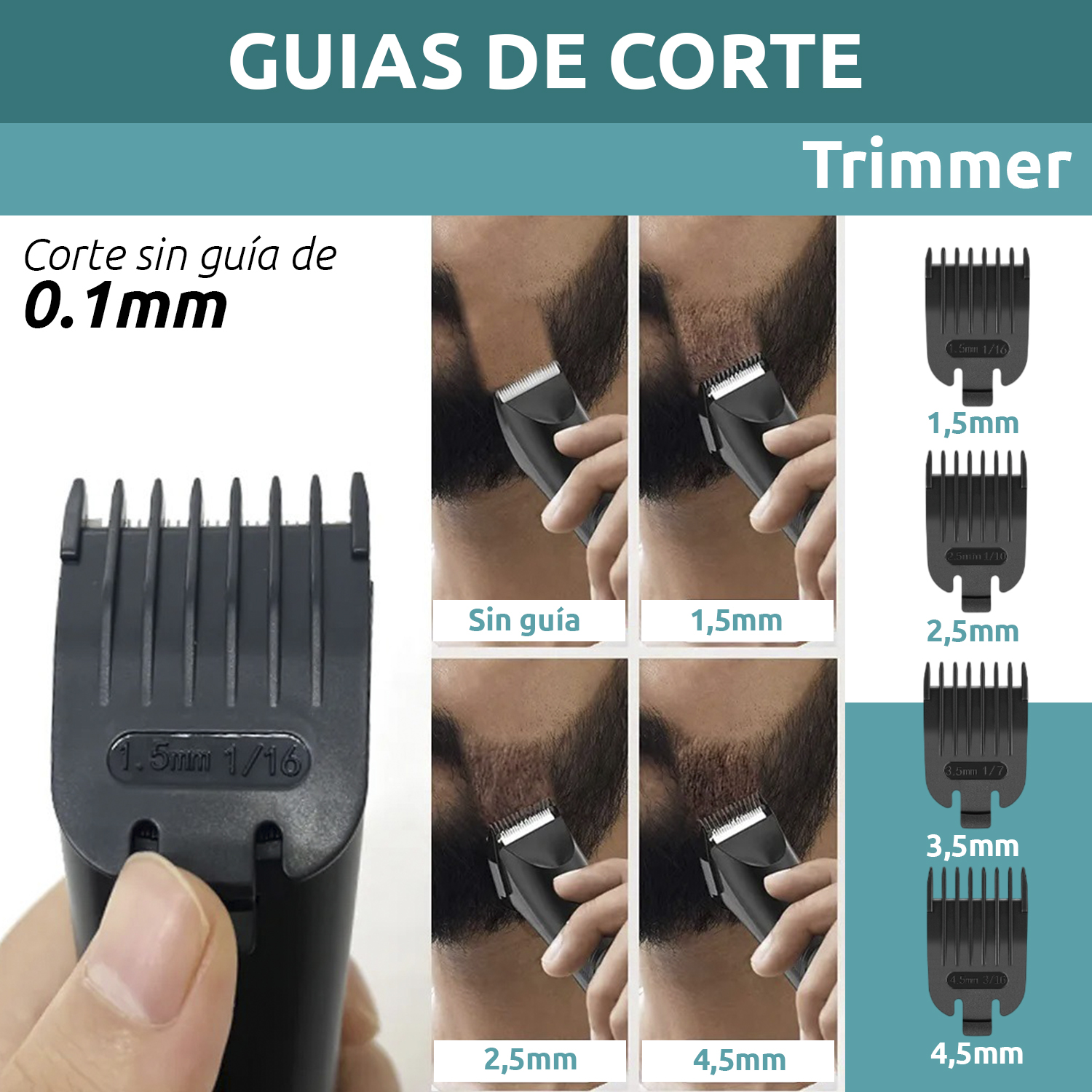 Incluye cuatro guías de corte que facilitan la personalización del estilo deseado. Además, cuenta con cabezales lavables, lo que asegura una fácil limpieza y mantenimiento. El paquete también incluye un cable USB y un cepillo de limpieza, garantizando que tengas todo lo necesario para un uso óptimo.