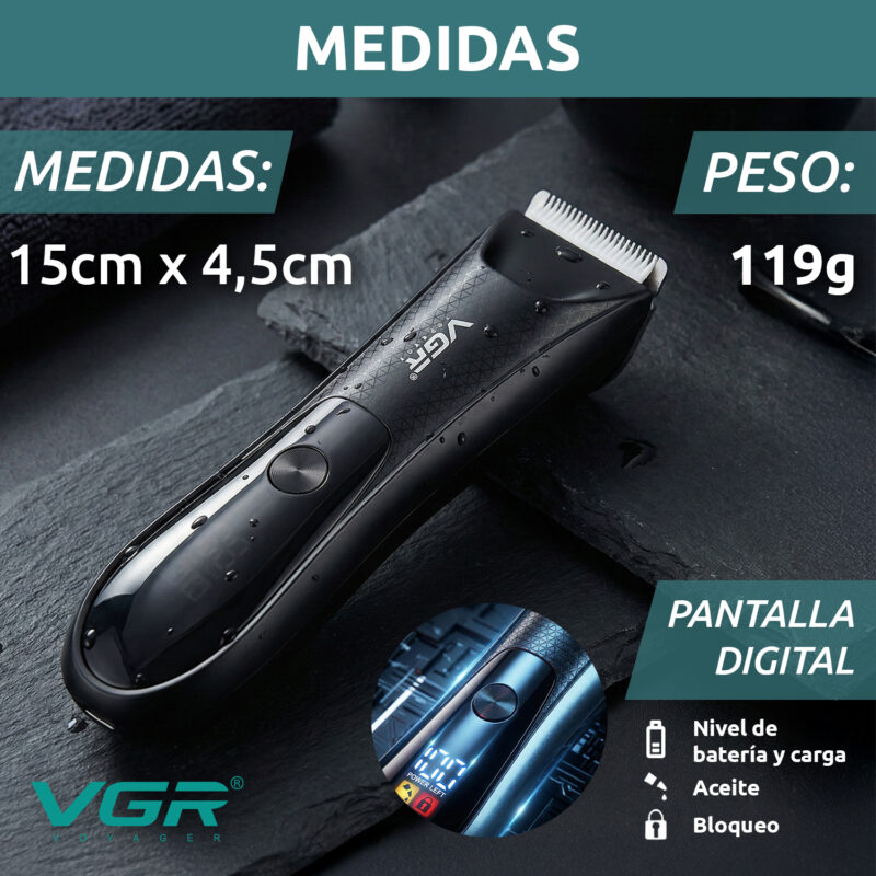 La Trimmer Vgr V-957 es apta para todo tipo de usuarios, aunque no se recomienda su uso en bebés. Su diseño compacto y ligero, con un peso de 773 g, la convierte en una opción práctica para quienes buscan un corte de cabello en la comodidad de su hogar o en cualquier lugar.