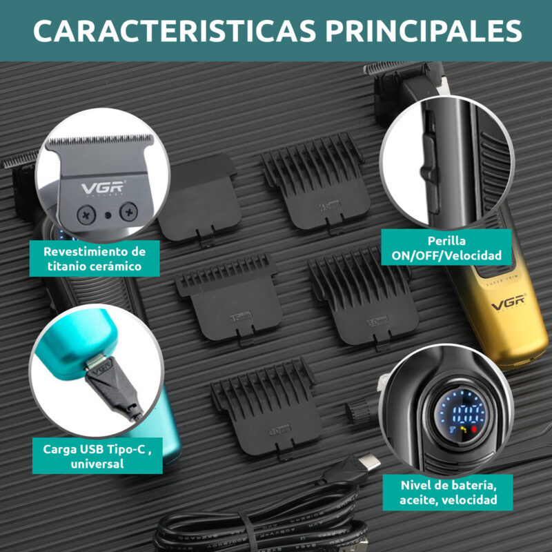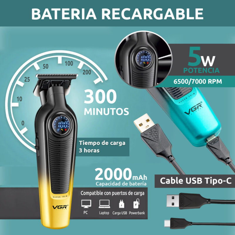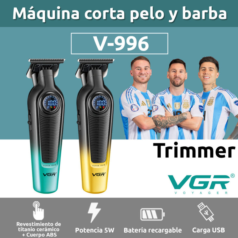 MAQUINA DE CORTAR PELO PROFESIONAL INALAMBRICA PATILLERA TRIMMER VGR V-996 VELOCIDAD 7000 RPM