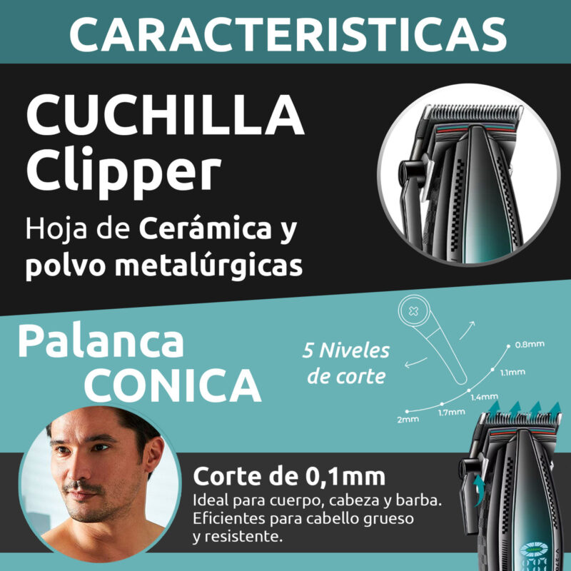 Tamaño de corte con palanca: 5 niveles 0.8/1.1/1.4/1.7/2mm