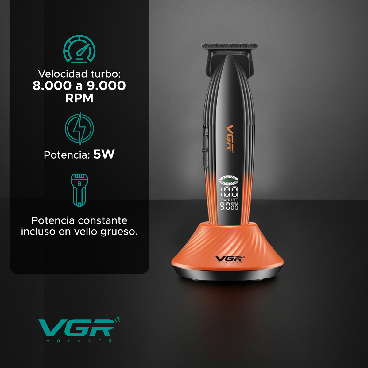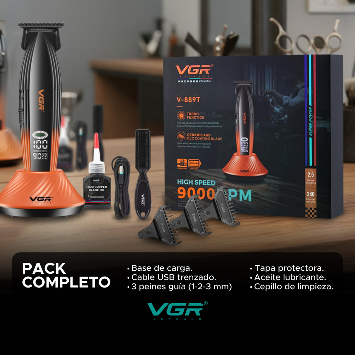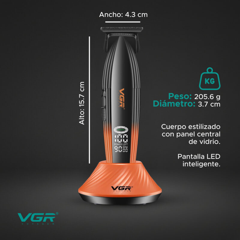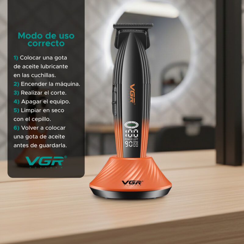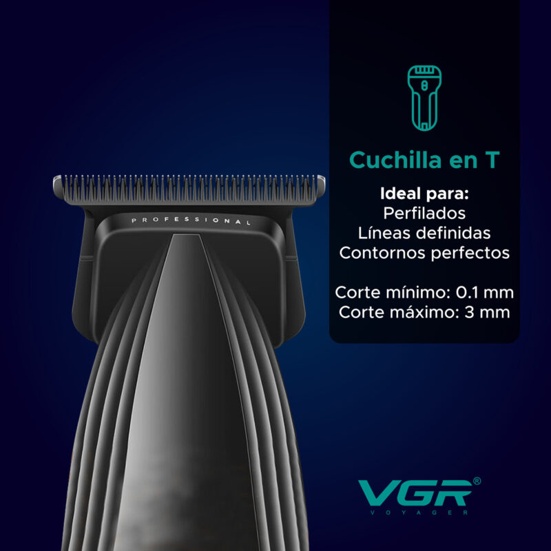 La Máquina de cortar pelo Trimmer VGR V-889T está pensada para trabajos de precisión profesional, ideal para perfilados, líneas definidas y contornos perfectos.