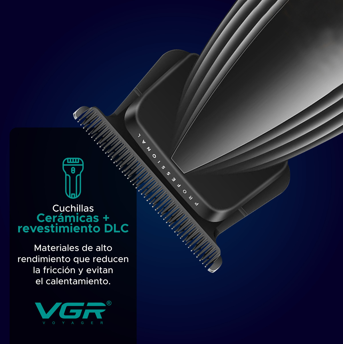 Sus cuchillas de cerámica con revestimiento DLC reducen la fricción, evitan el calentamiento y mantienen un corte suave y preciso incluso en vello grueso. La cuchilla en T permite un control total en detalles finos y terminaciones prolijas. El motor con función turbo eleva la velocidad de 8000 a 9000 RPM, garantizando potencia constante.