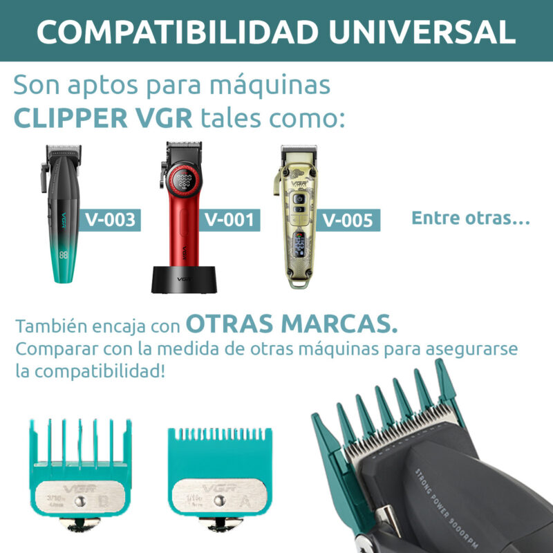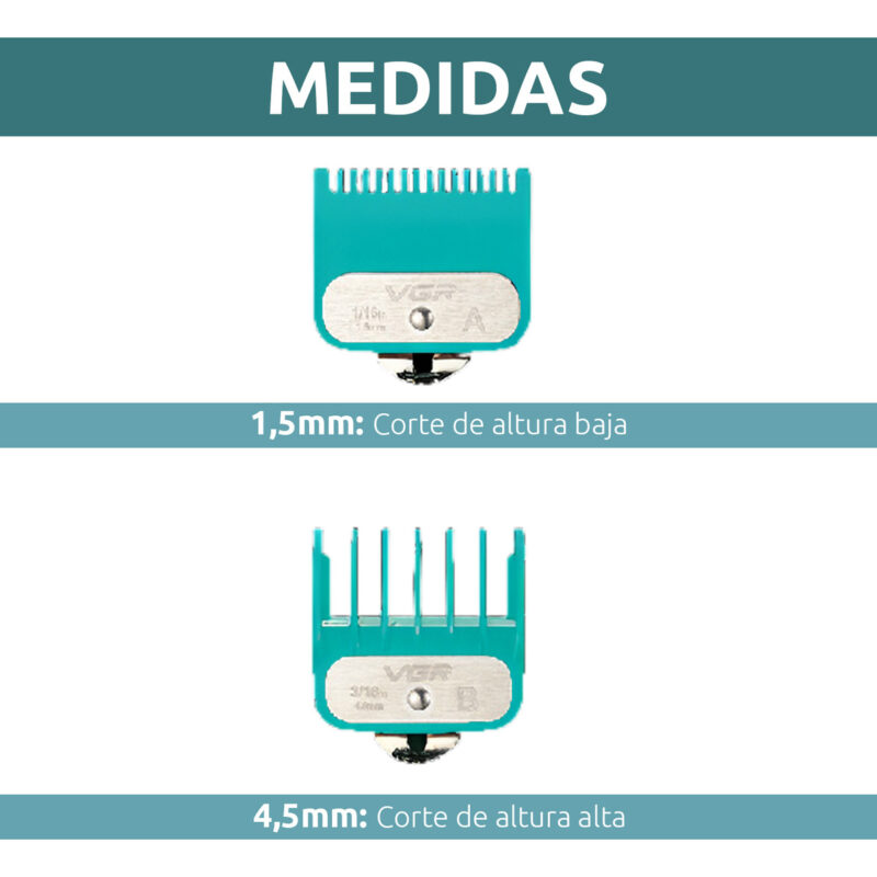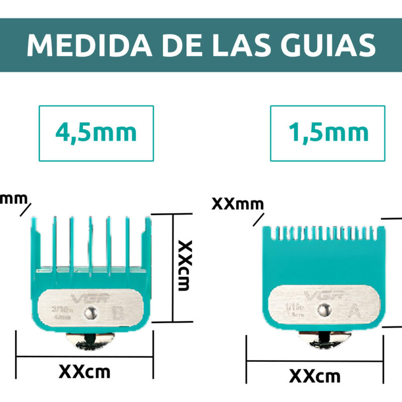 KIT PEINES GUIA PARA CLIPPER CORTE BARBERIA PROFESIONAL VGR 1,5MM Y 4,5MM