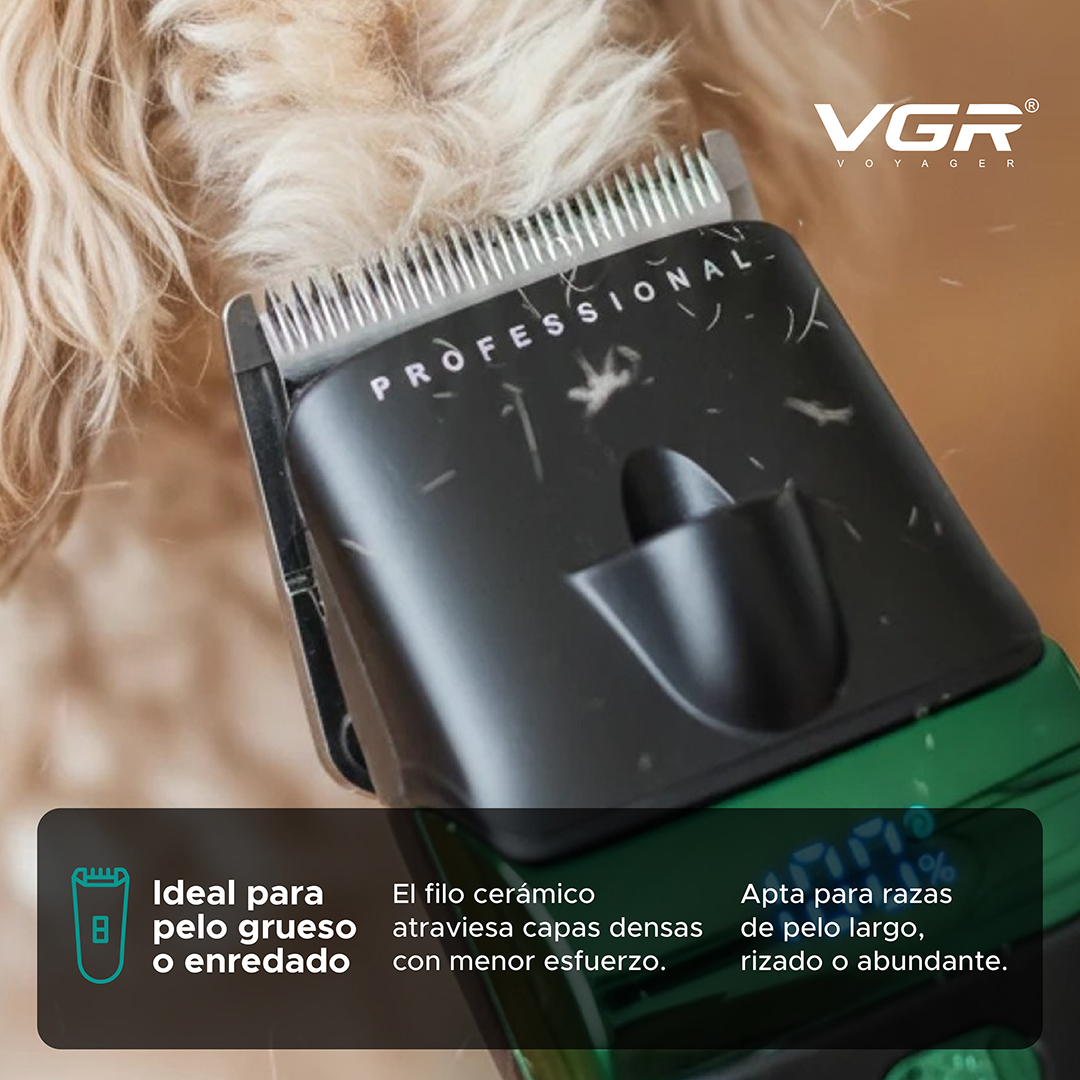El filo cerámico atraviesa capas densas con menor esfuerzo, ideal para razas de pelo abundante y sesiones de corte prolongadas.