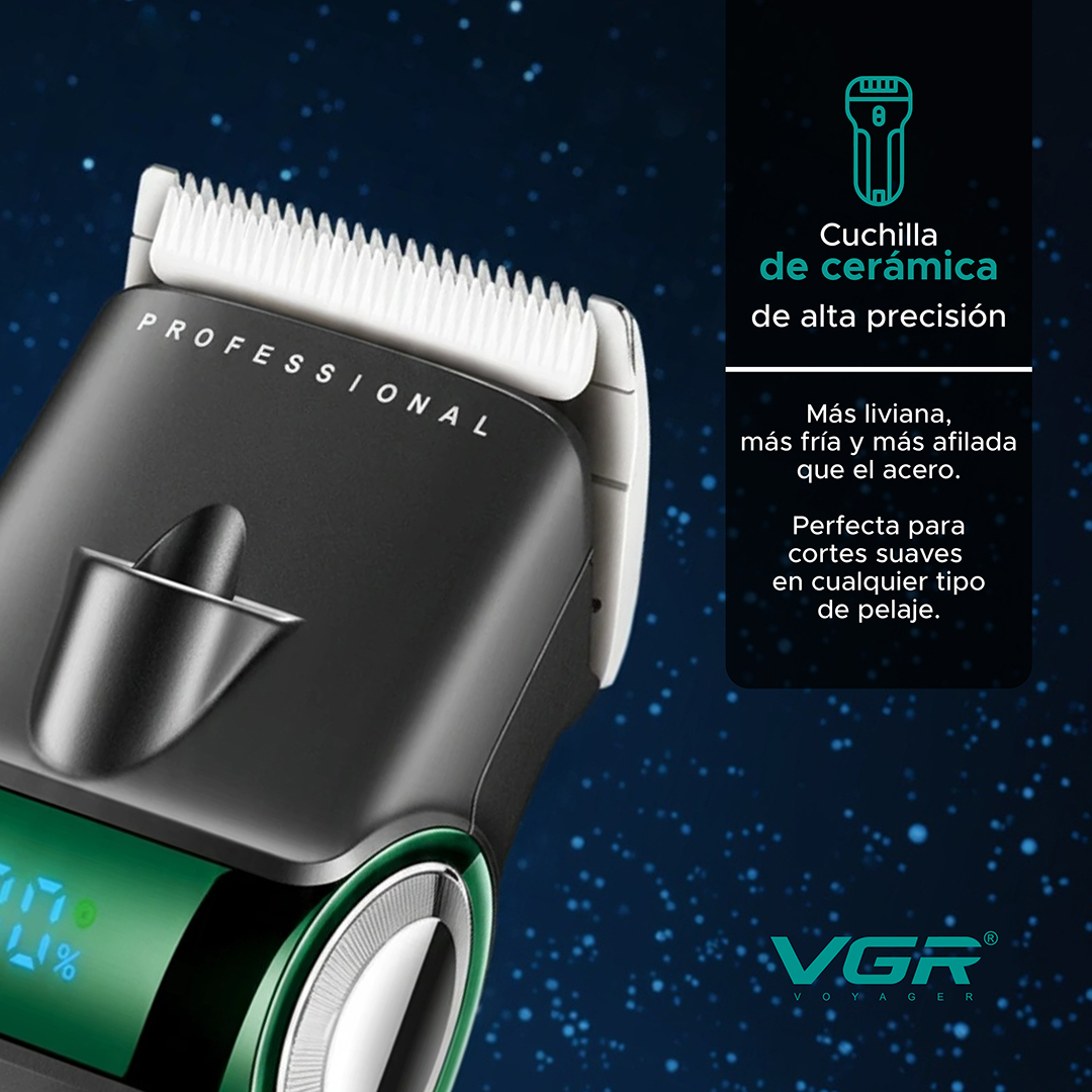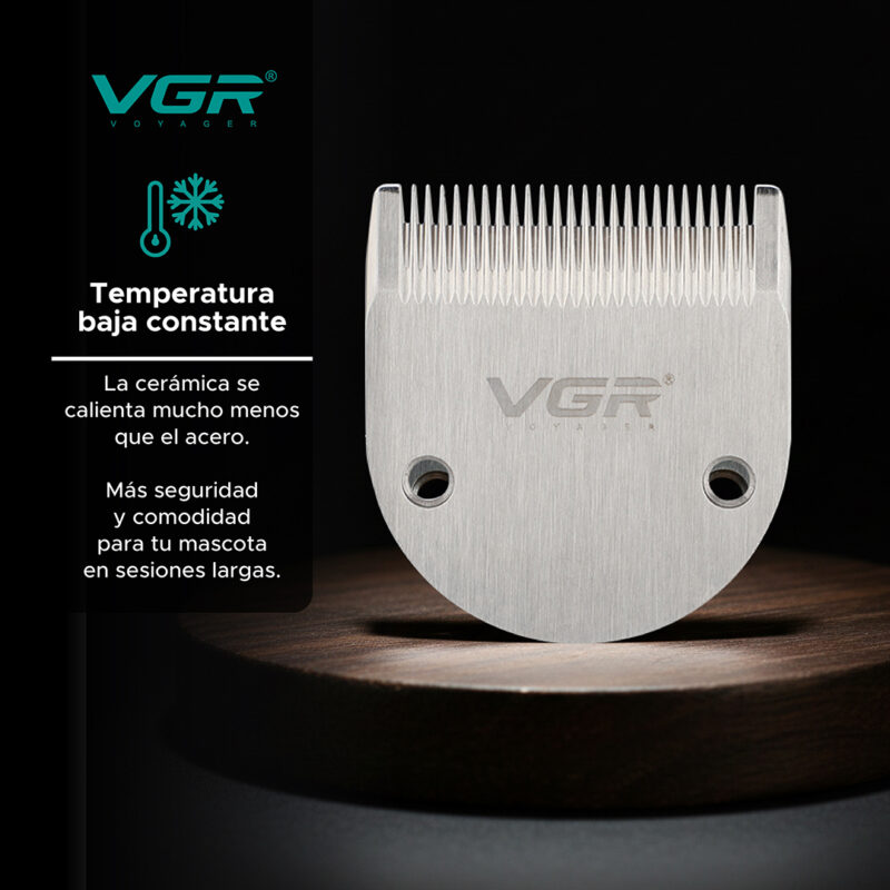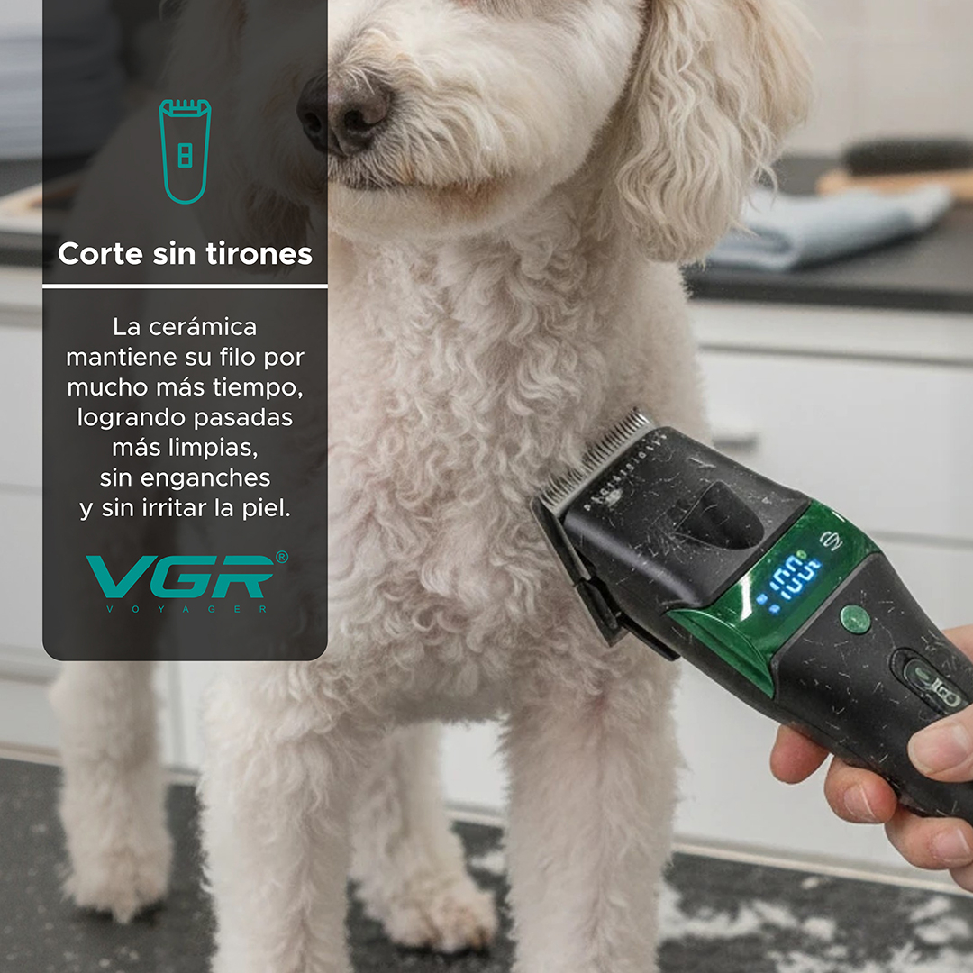 La cerámica es más afilada, más liviana y se mantiene fría durante todo el corte. mantiene su filo hasta 3 veces más tiempo que el acero tradicional, logrando pasadas más limpias sin tirones ni enganches que irriten la piel de tu mascota.