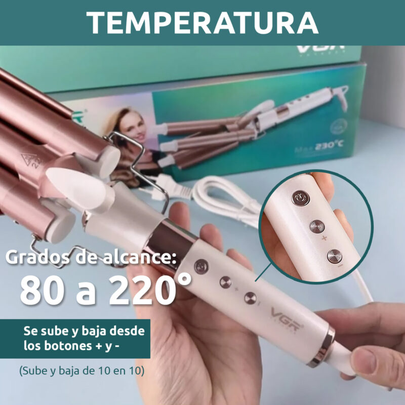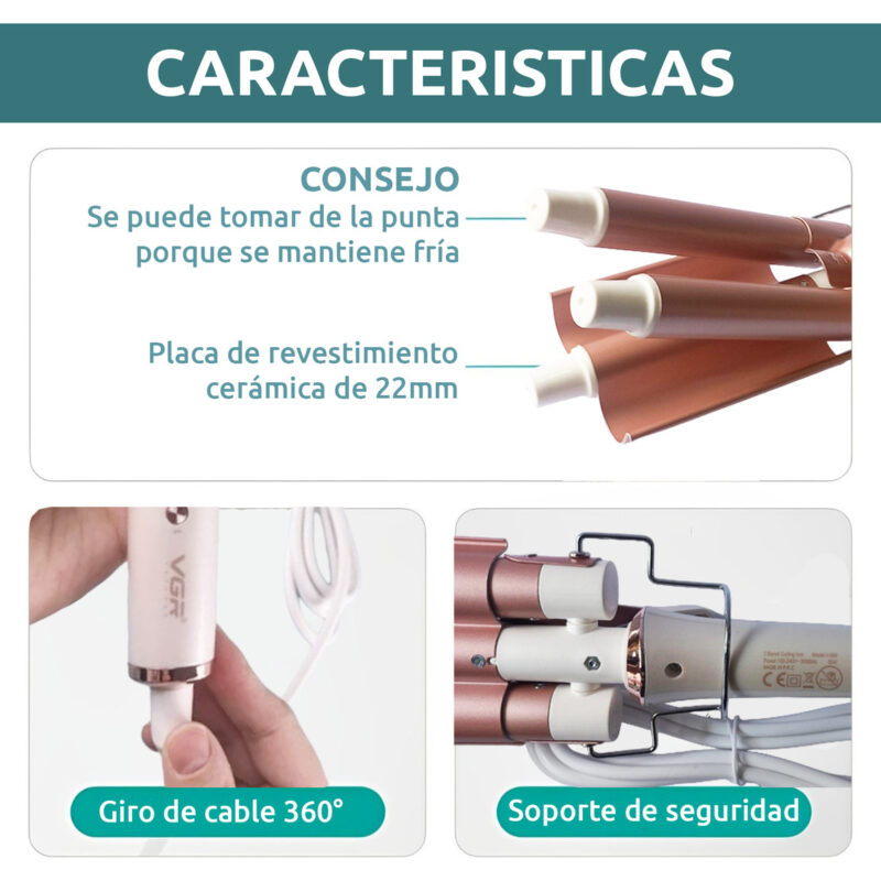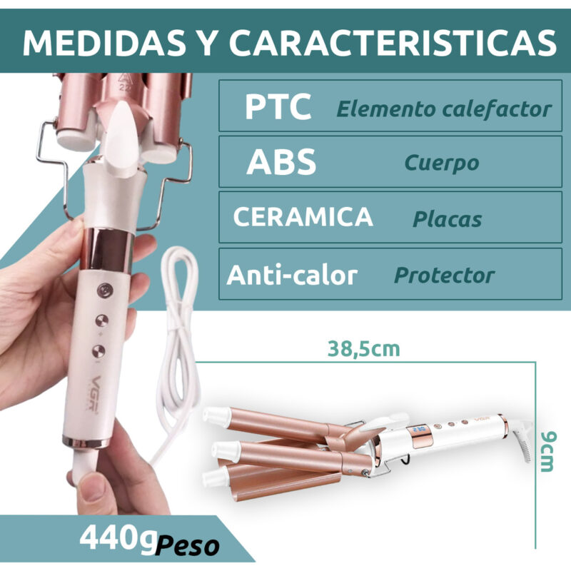 Rizador buclera 3 barriles cerámica vgr v-599 ondas 220°