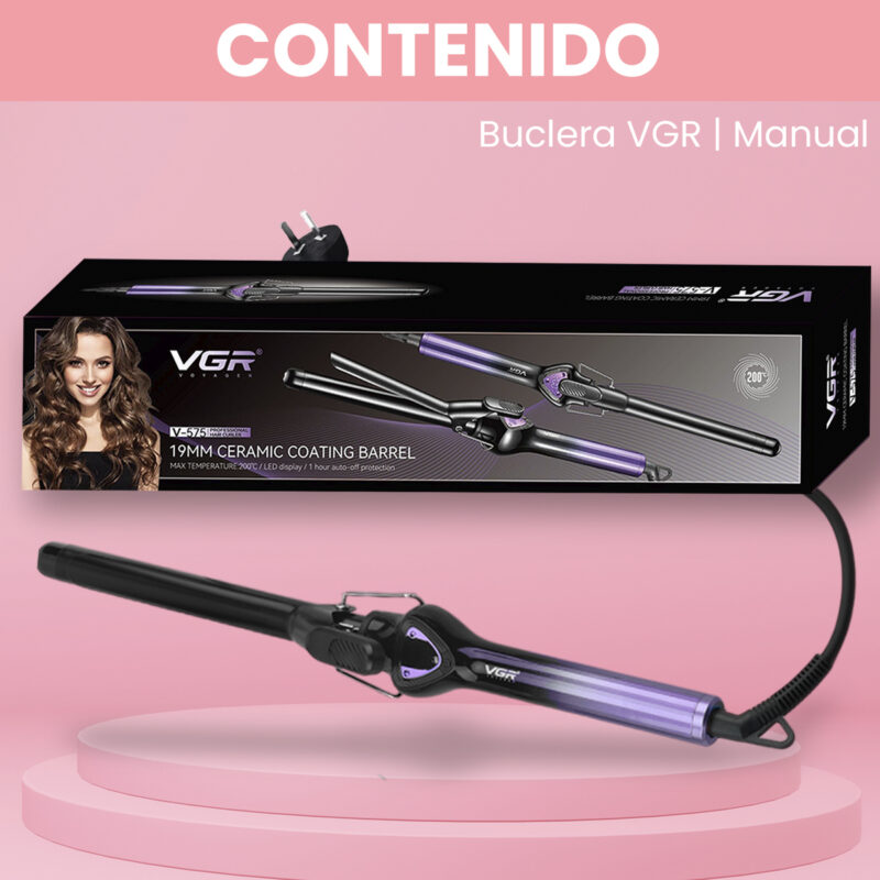 Rizador Buclera Vgr V-575 Cerámica Pro 200°c 7 Niveles Led Violeta