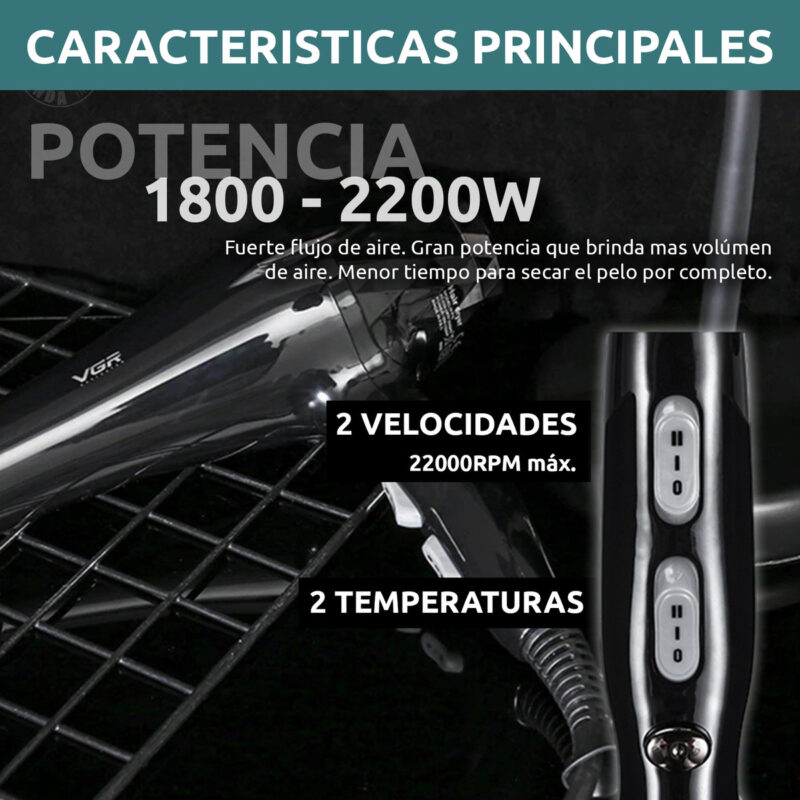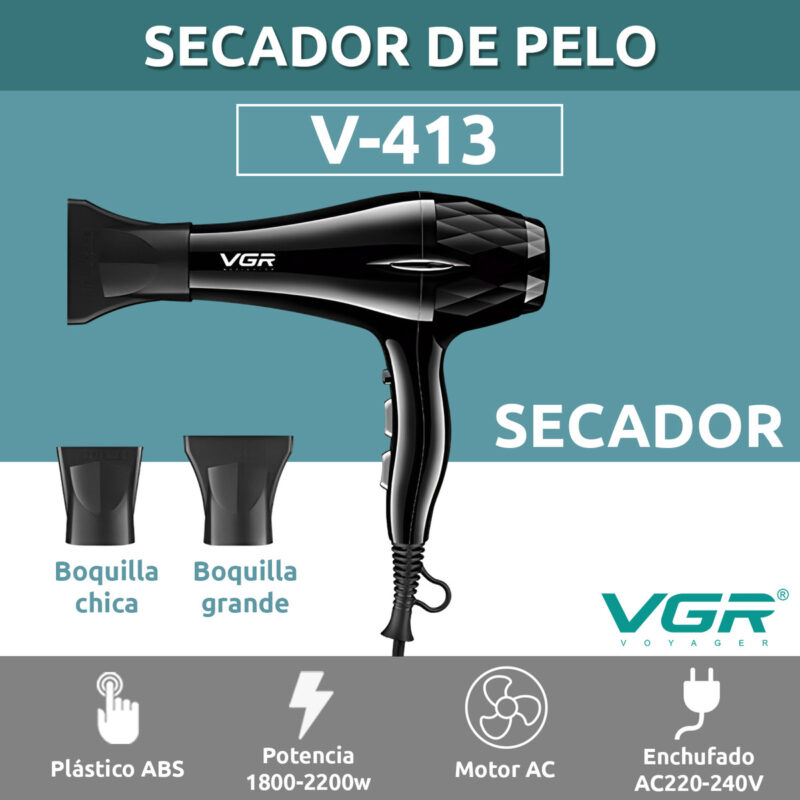 Secador de pelo profesional vgr v-413 salon turbo 2200W
