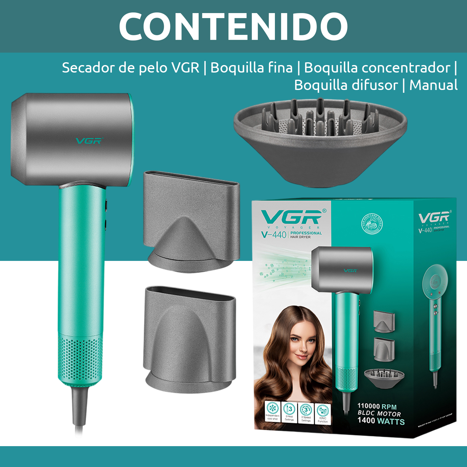 SECADOR DE PELO PROFESIONAL VGR V-440 IONICO POTENCIA 1400W MOTOR BLDC