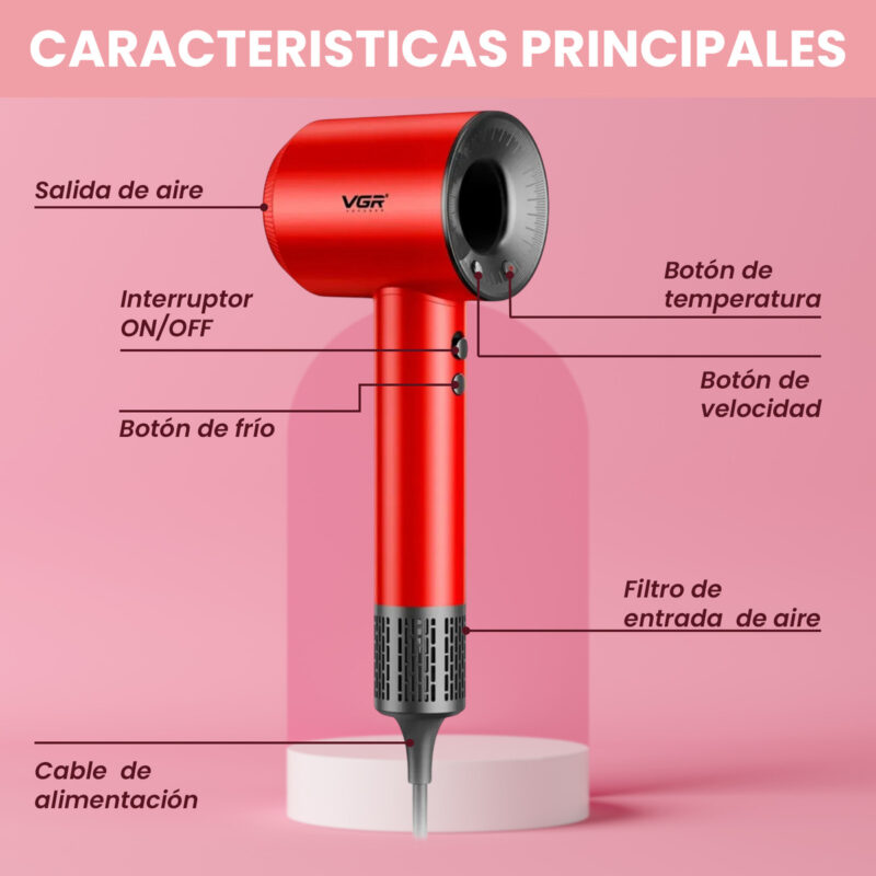 Secador De Pelo Profesional VGR V-445 1600W Rojo