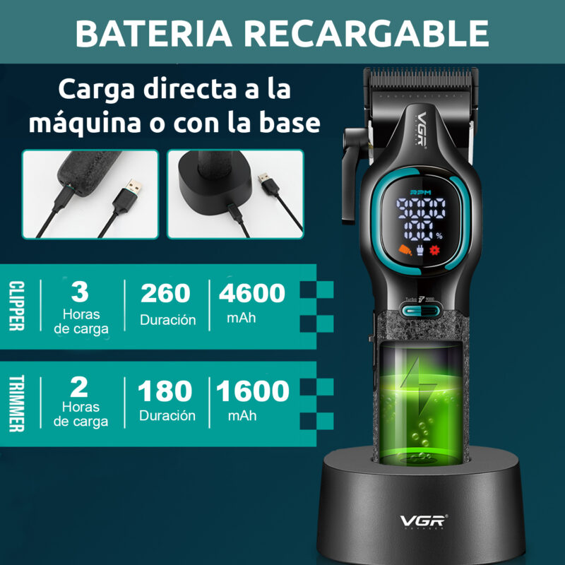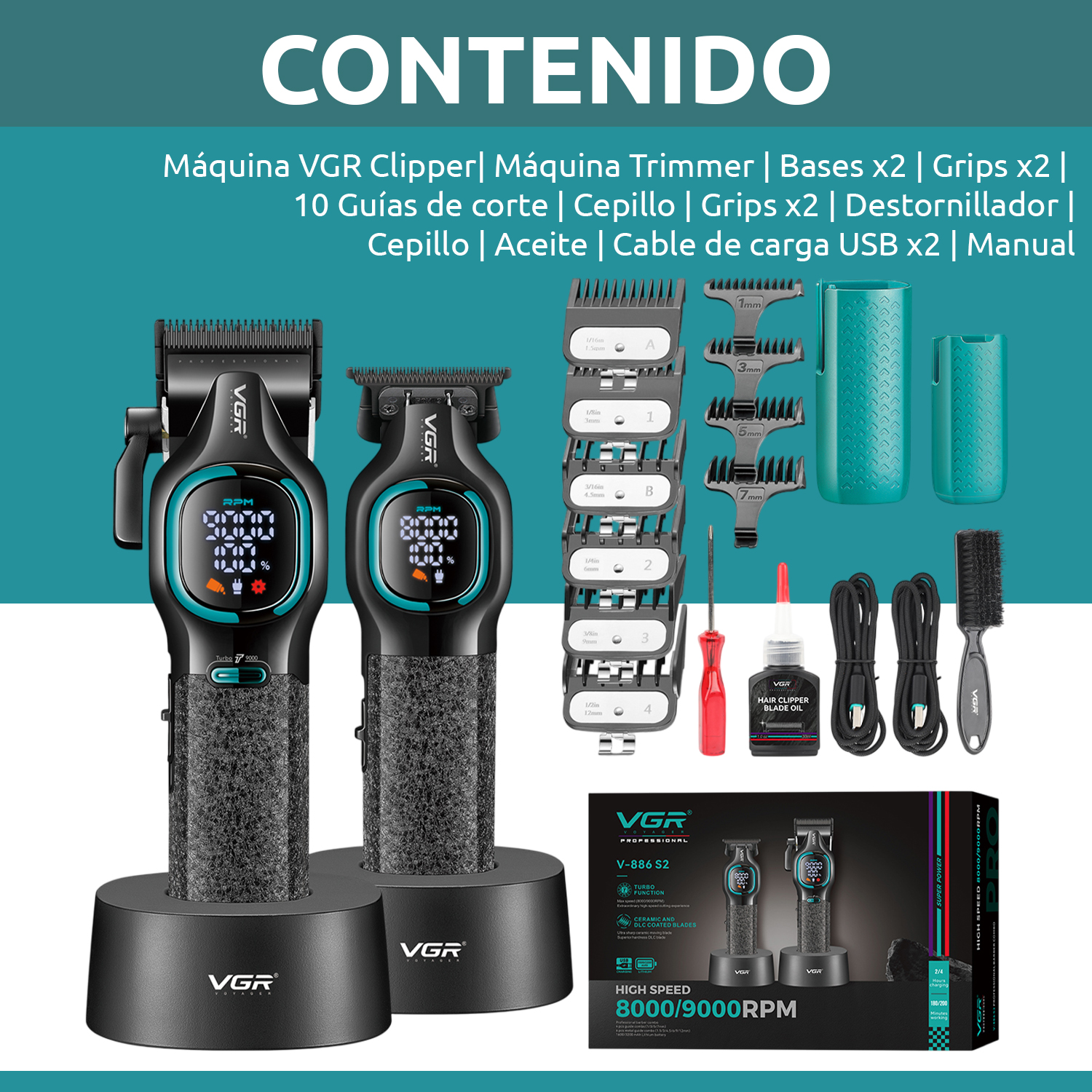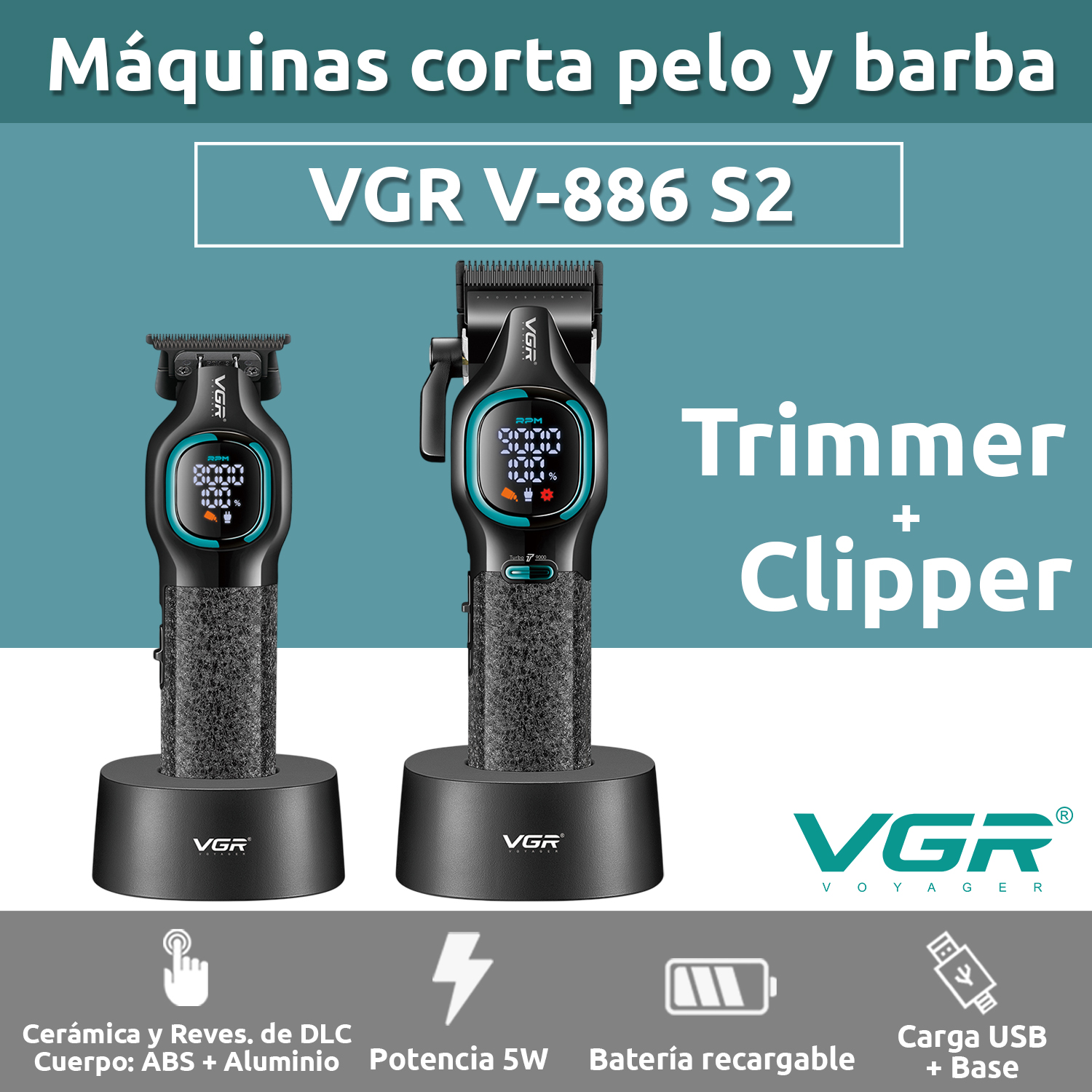 MAQUINA DE CORTAR PELO INALAMBRICA CLIPPER + PATILLERA TRIMMER VGR V-886 S2 GRIPS TURBO 9000RPM
