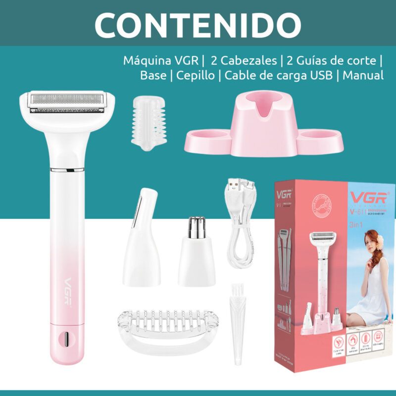 Set Mujer 3en1 Afeitadora Corporal Nariz Ceja Vgr V-611 Ipx5