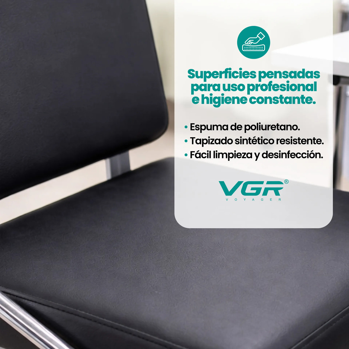 Fabricada con materiales resistentes y superficies de fácil limpieza, incorpora espuma de poliuretano y tapizado sintético preparado para uso intensivo profesional.