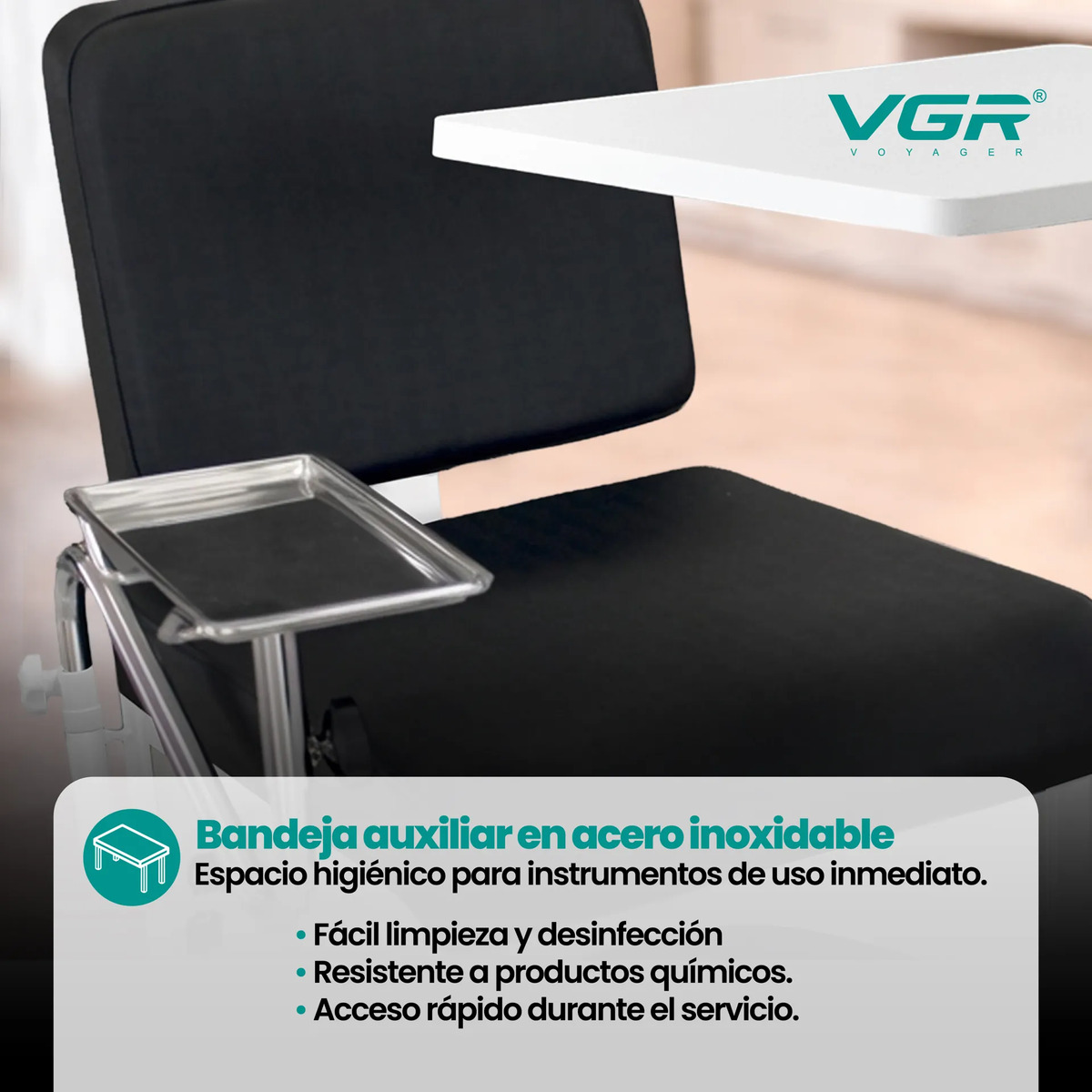 Incluye bandeja auxiliar en acero inoxidable ideal para instrumentos de uso inmediato, resistente a productos químicos y de fácil sanitización. Sus accesorios desmontables permiten configurar la estación según la técnica de trabajo, adaptándose a distintos tratamientos.