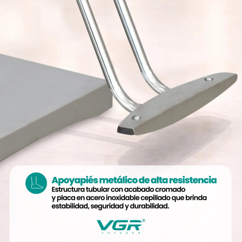 Los brazos anatómicos acolchados y el apoyapiés metálico reforzado brindan estabilidad y una postura relajada durante el corte o tratamiento.