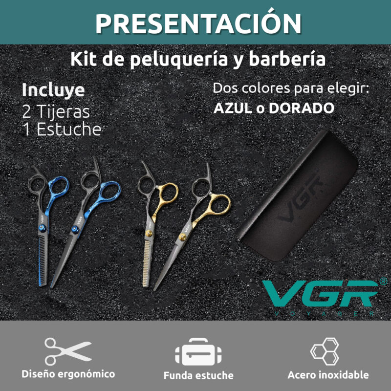 Tijeras Peluqueria Kit Vgr De Corte Entresacado Y De Pulir