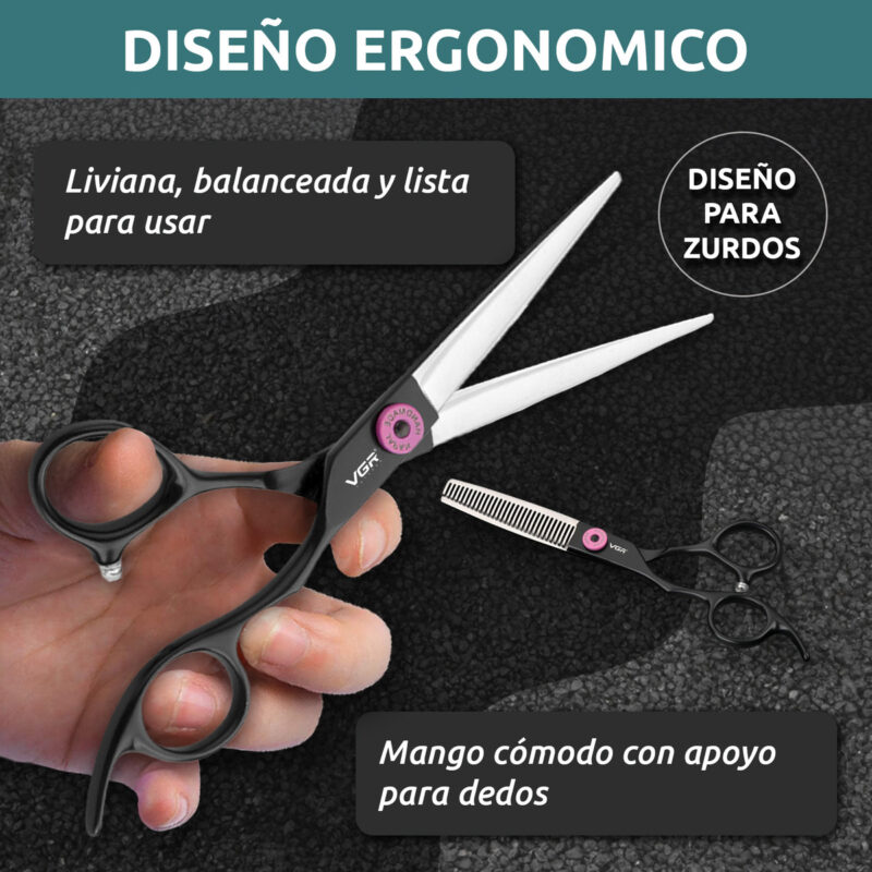 Tijeras Peluqueria Kit Vgr De Corte Entresacado Y De Pulir Para ZURDOS