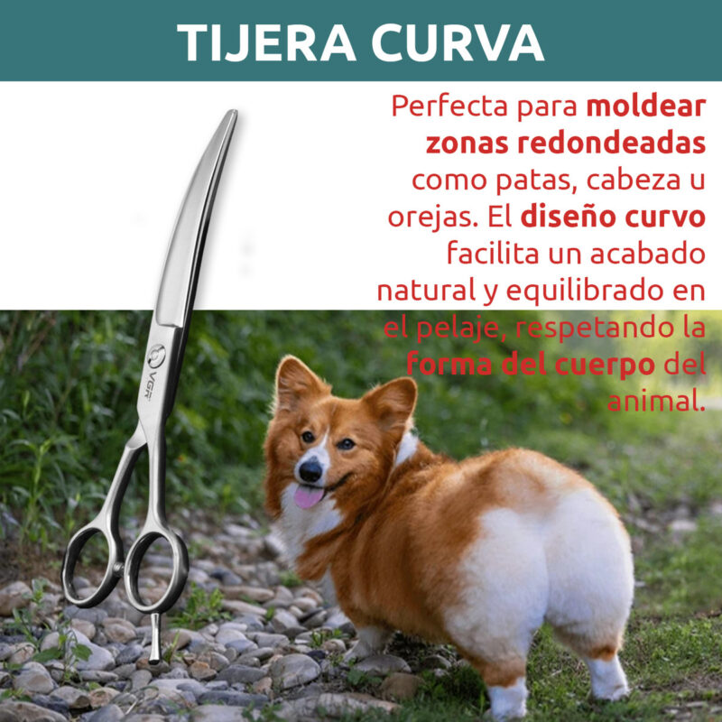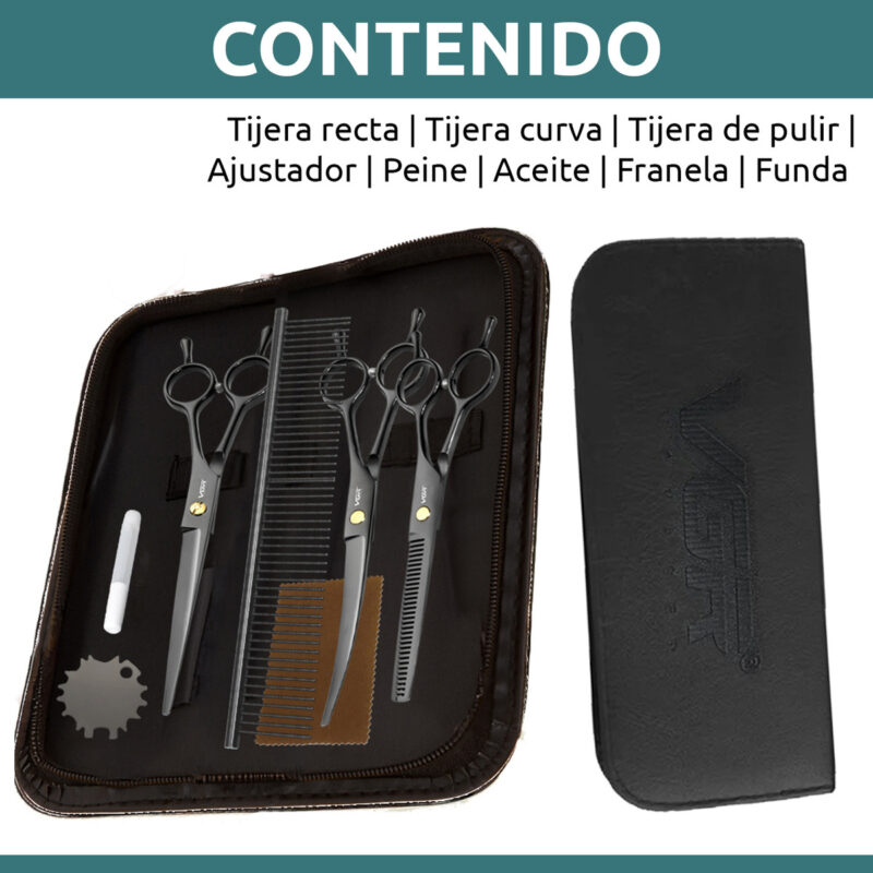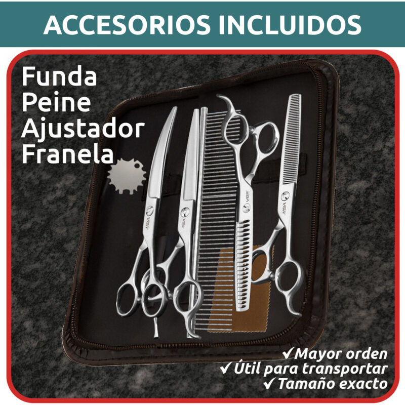 Kit x4 Tijeras Peluqueria Mascotas Vgr Recta Curva Entresacado Plateado 7 pulgadas